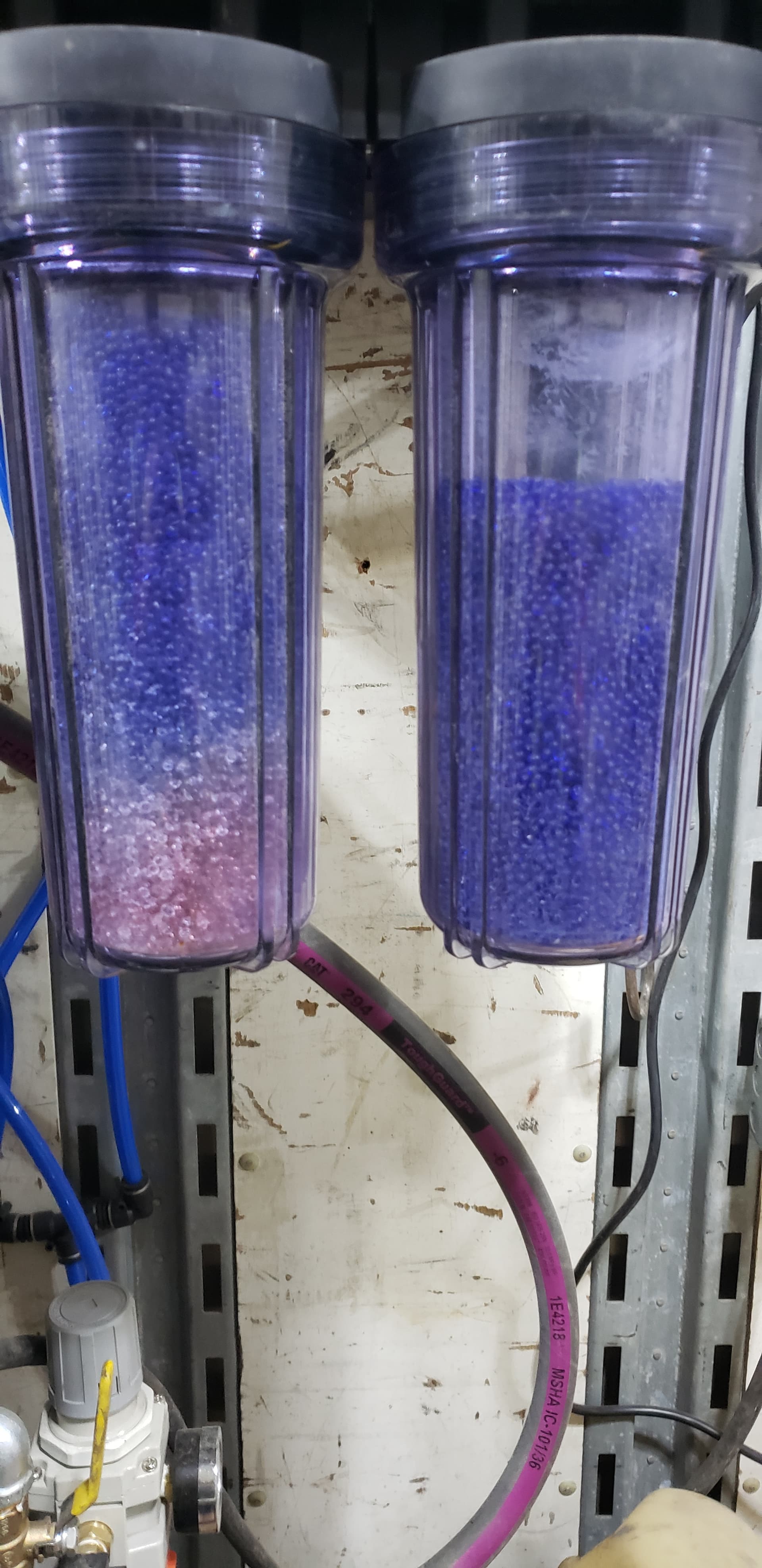 This is my desiccant traps after half an hour of combined pneumatic angle grinder (2hp motor), die grinder (1 hp) and chipping gun use.