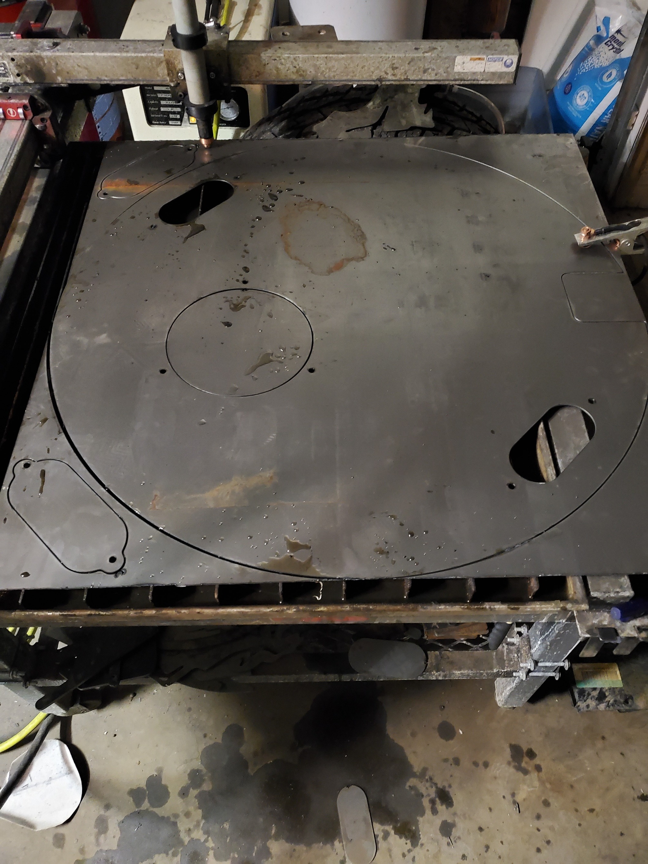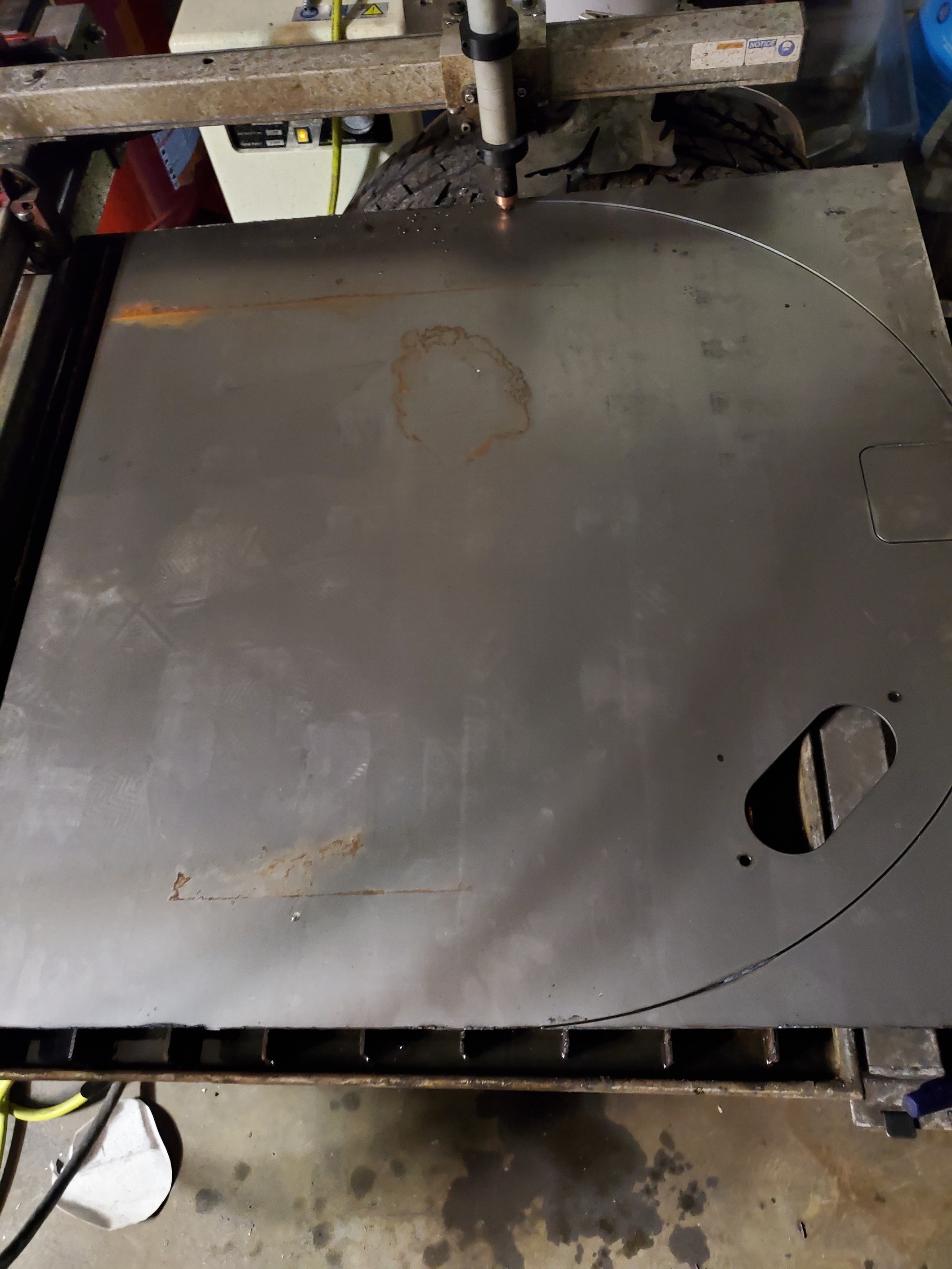 And I’ve got my new floor for my Jeep with access panels. Mine lined up perfect. Even if it were off by a tenth of an inch, it wouldn’t have mattered for my application as I could have just used a flap disk to smooth it out where the lines didn’t quite come together. But it might matter to you if it were a precise art file so maybe take a little extra time lining it up top on bottom, left to right, whatever you’re doing. I’ve done this successfully on a large 33" monogrammed letter. It’ll work on more than a simple circle.