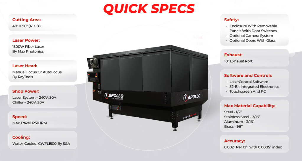 The frame, drivetrain, electronics, servos, ballscrews, gantry…the machine is completely different than the XR. There are no common parts at all between these machines. This frame has thick tubular sides on the frame, bonded, fastened, and machined in house. There are some sheet metal sides for the enclosure for styling and sending small parts to the retrieval cart. We started with a fresh frame design that would provide the rigidity so that we can rapid the unit at over 1200ipm. The Apollo’s full 4-servo drivetrain can go incredibly fast, while the XR tops out around 400ipm, which is more than adequate for plasma. Hopefully this answers any questions you may have about this being a re-badged XR with a laser head…this is a ground up new design, new 32-bit electronics, full servos, heavy duty frame…it is an incredible machine with immense capability. We hope everyone here is as excited as we are about the capabilities this will offer folks who previously thought laser cutting was unattainable!