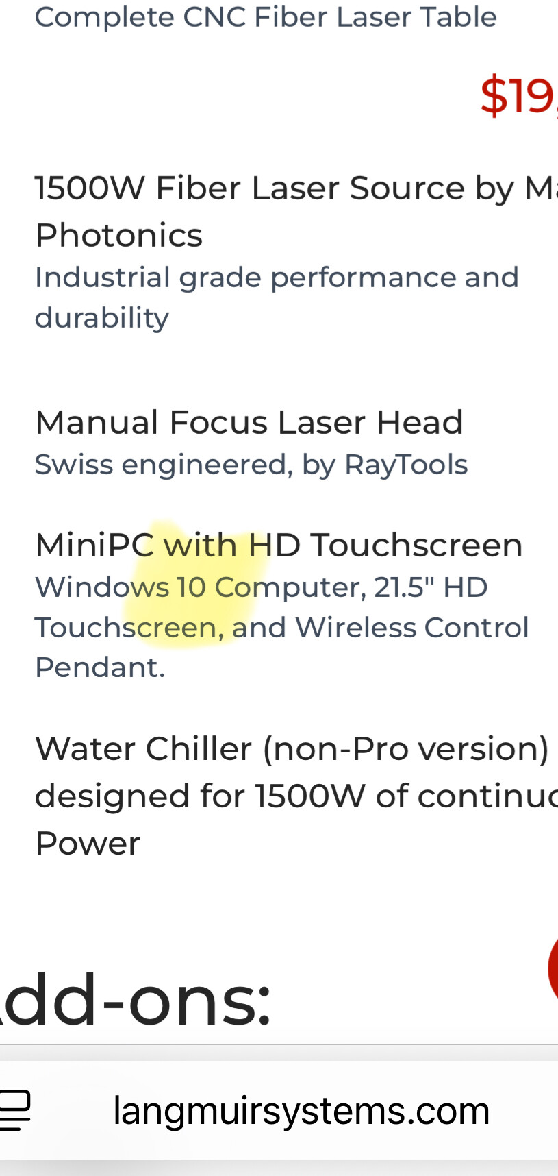 There you can see all of the available add-ons to make operating the laser easier or to give you equipment you might not already have.