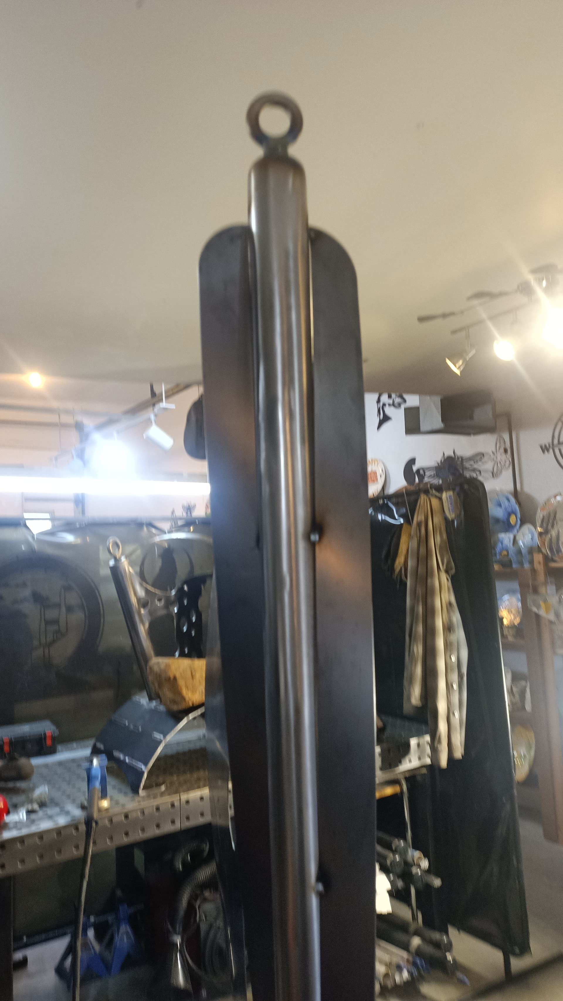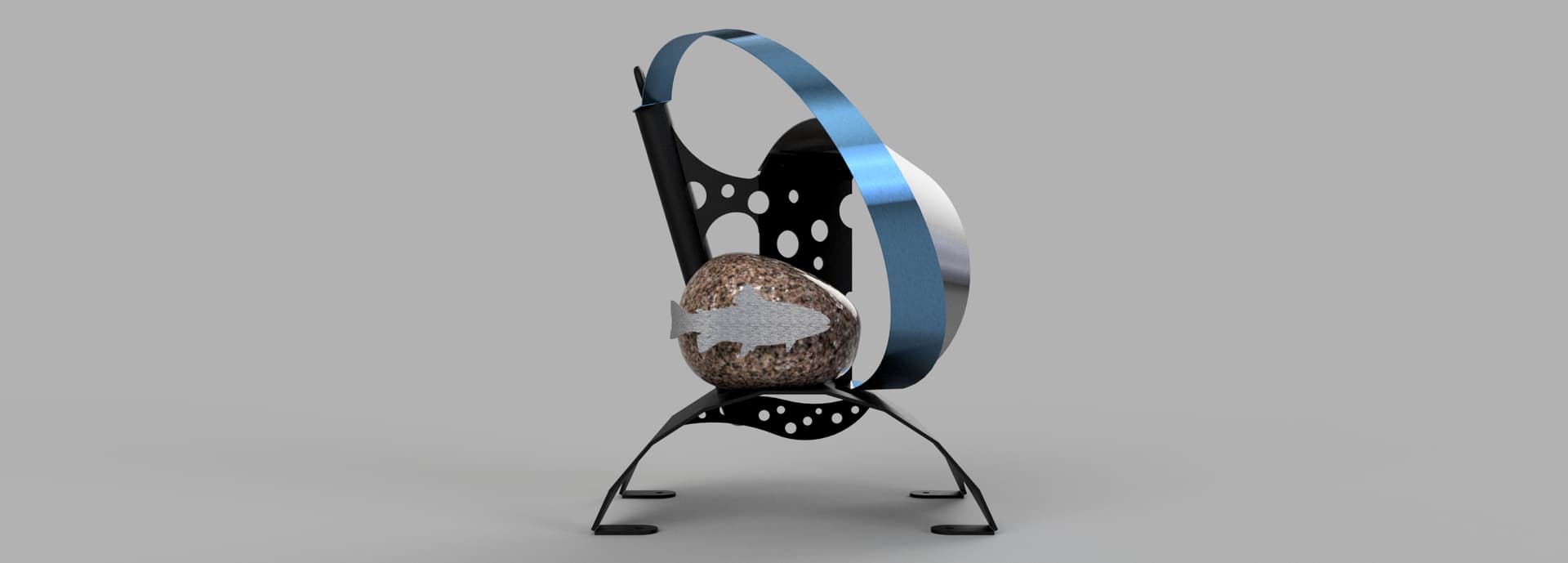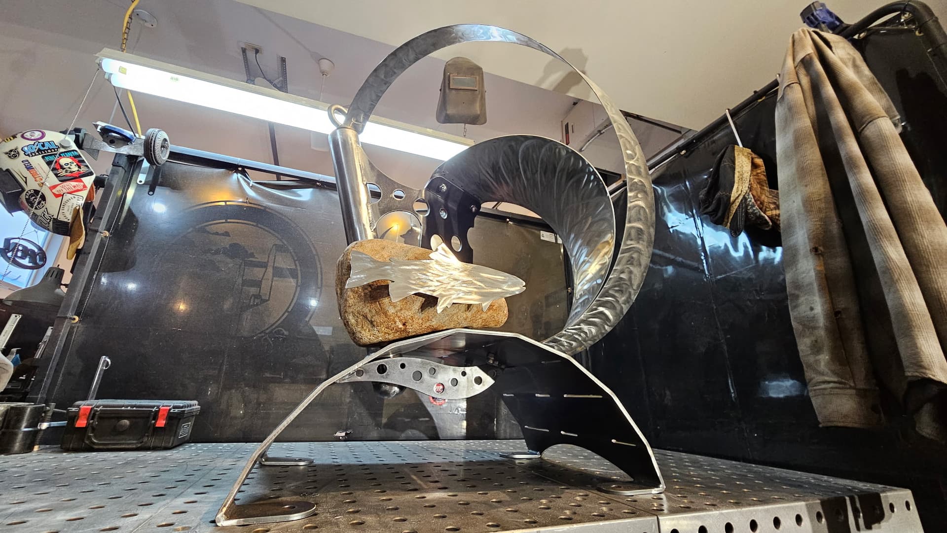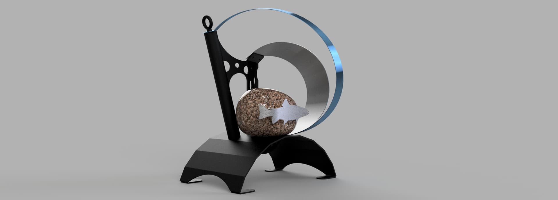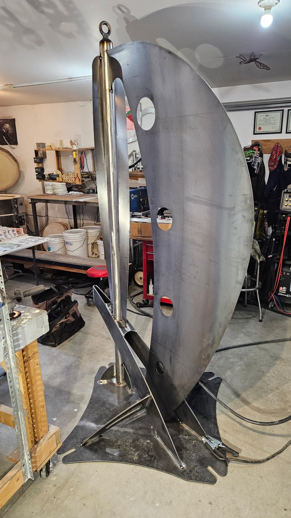 Shapeshift is ready for textured black powder coating. And one of the stainless hoops is going to get heat treated to Blue. The rock also needs to be acrylic sealed