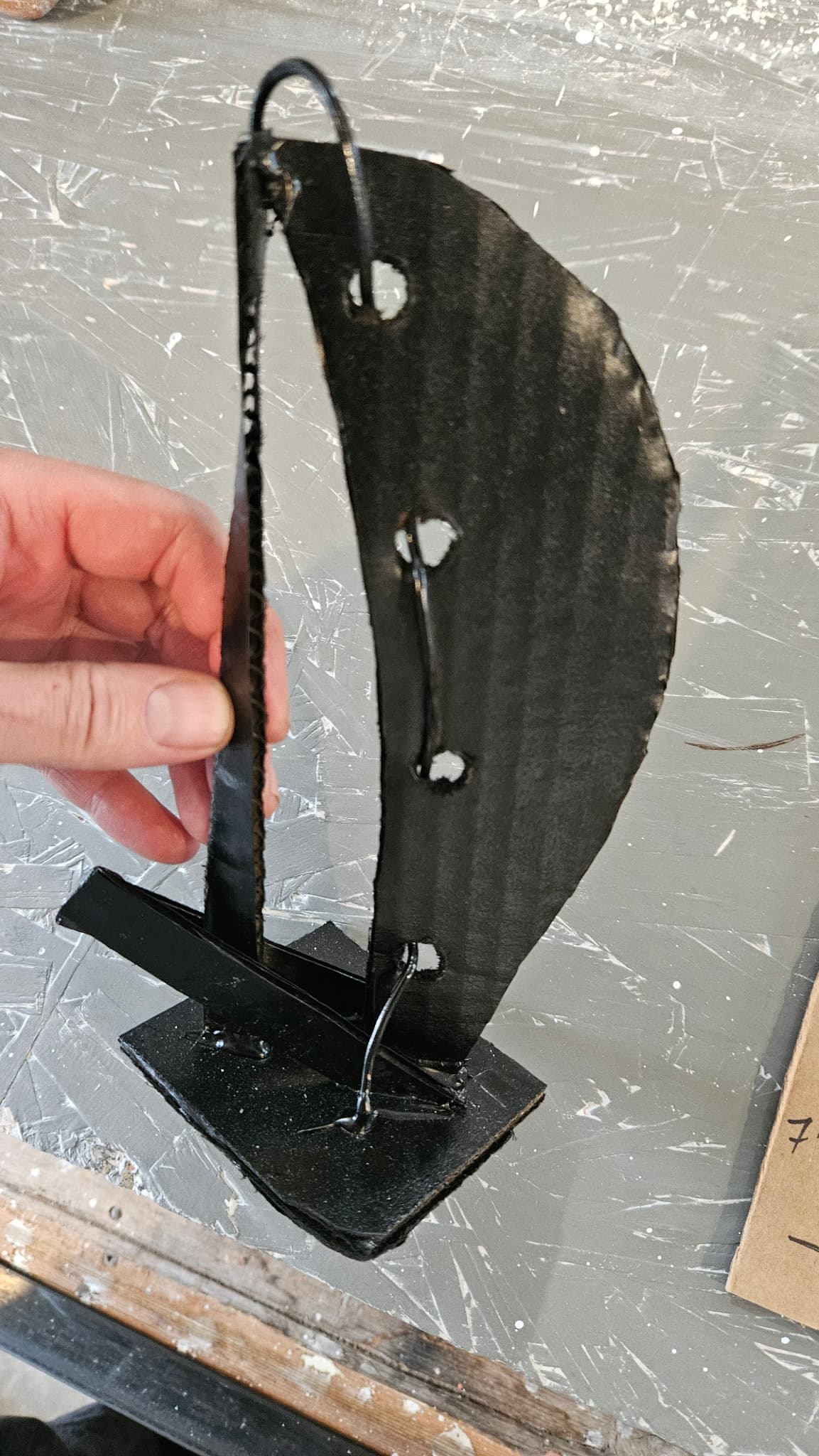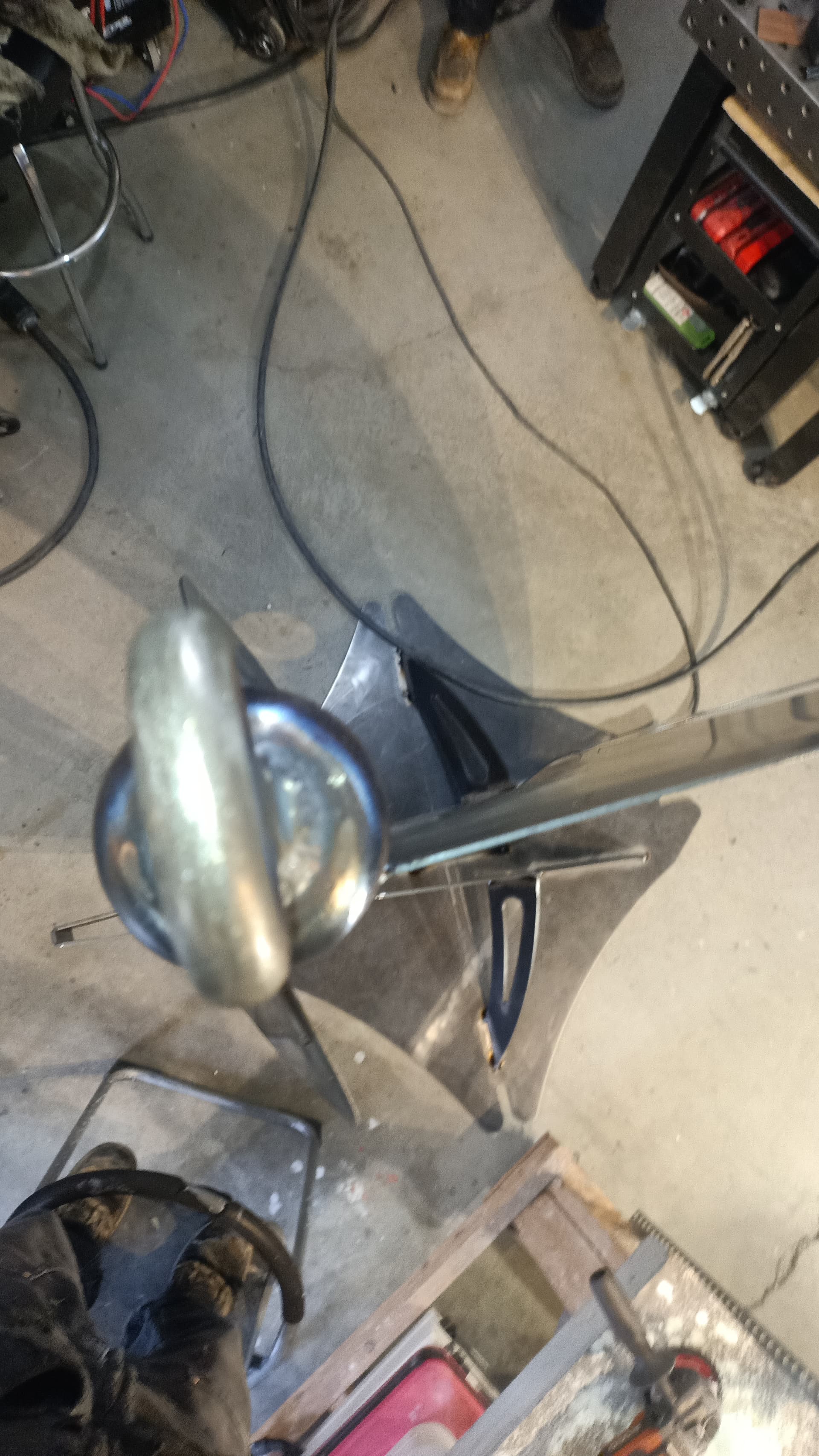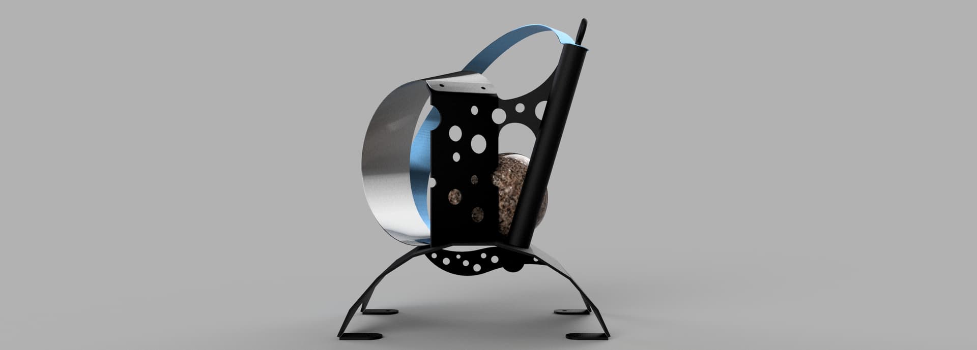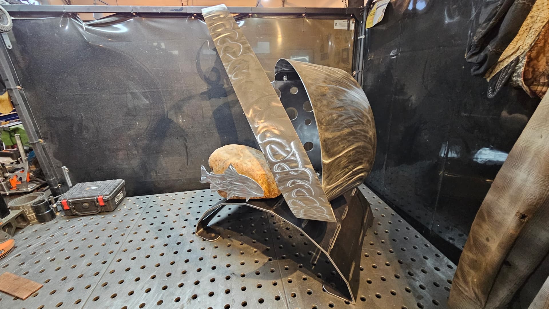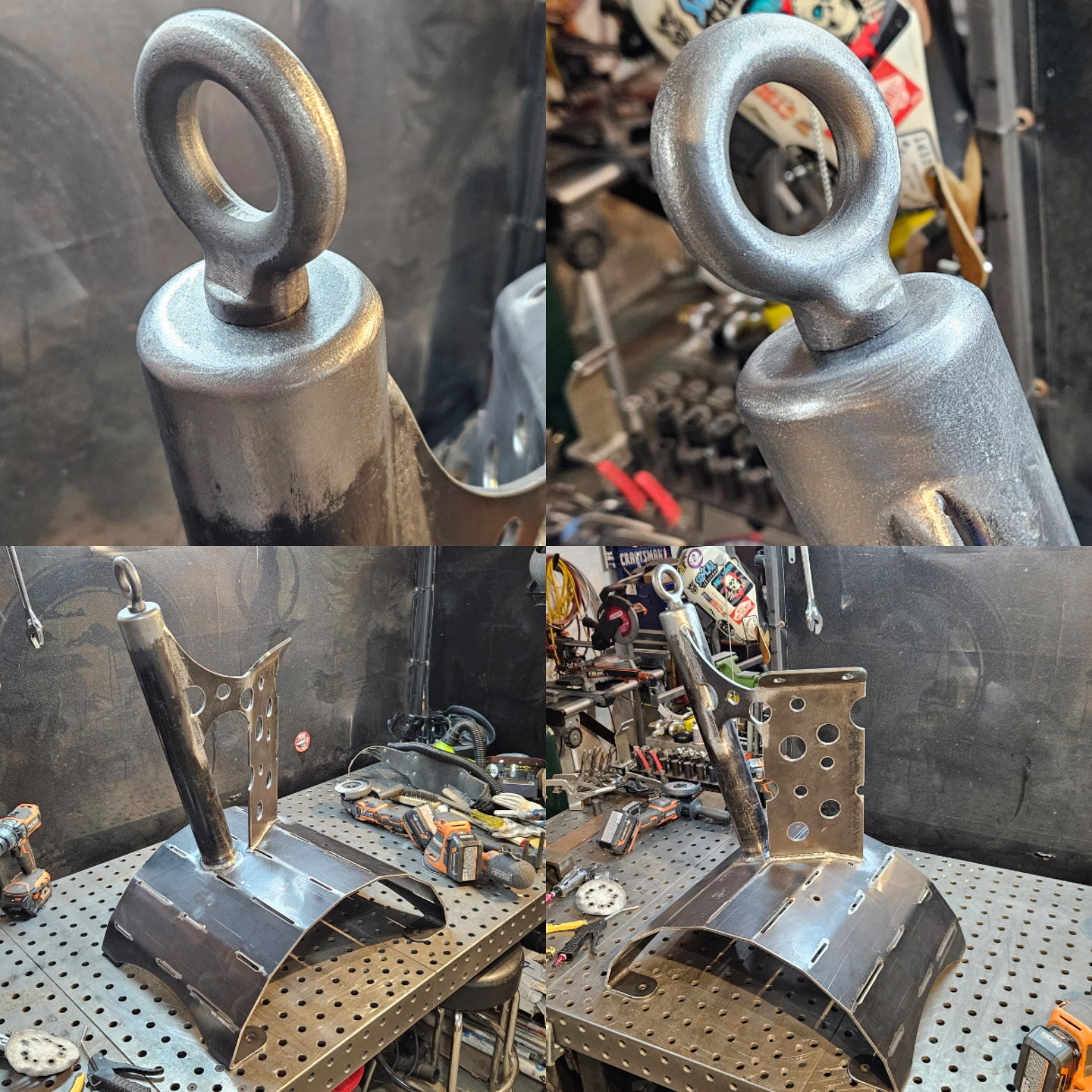 Shapeshift is ready for textured black powder coating. And one of the stainless hoops is going to get heat treated to Blue. The rock also needs to be acrylic sealed