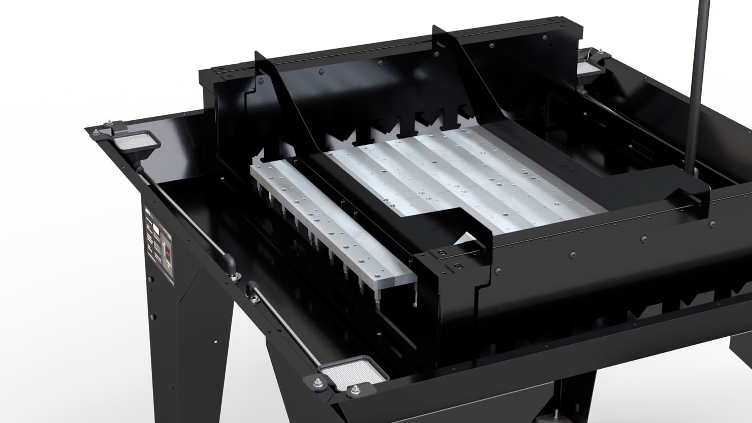 The baseplate doesn’t actually have or need precise alignment to the XYZ coordinate system of the machine, except that the surface must be parallel to the XY plane. Thats accomplished by decking off the baseplate after assembly. Note: the baseplates are coarsely located to the Y axis rails by the baseplate positioners which can be seen in this picture: