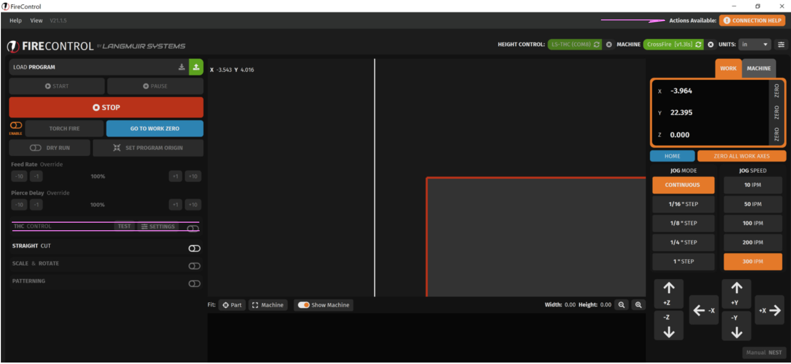 Tom if I understand this issue it has nothing to do with your plasma cutter. This is the THC module talking to the main board in the crossfire’s control box. Are both devices showing connected in the upper right of firecontrol? There should be 2 green boxes indicating the connection.