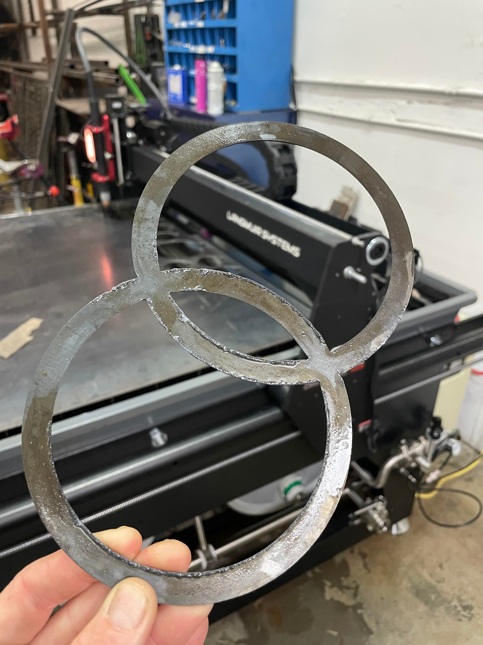 i just cut some rings they ran perfect here is a photo. this was 100% made in fusion360. i then separated the rings to cut two ring segments and it is still slightly pausing on the nodes where i patched the rings apart. i am not certain if this is normal. either way a big improvement. so i was told that i need to clean up my inkscape files manually in fusion before i do my final 2d and post. is this something that yall do? or a better question may be, when making semi complex custom signs or cutouts what is your process? what programs? what are the ways you have had success? i dont want to set myself up for failure by using the wrong programs. thank you so much for the help.