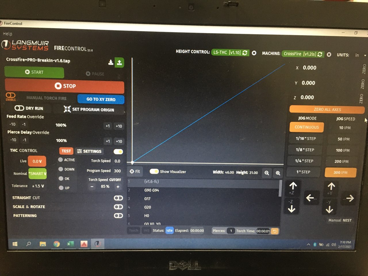 So from the pics attached you can see my torch is bottom left hand corner and its zeroed out. I can run the break in program and that all works correctly to go from corner to corner of the table. If I load my part, it shows my torch location as being further over on the x axis than where the torch is?