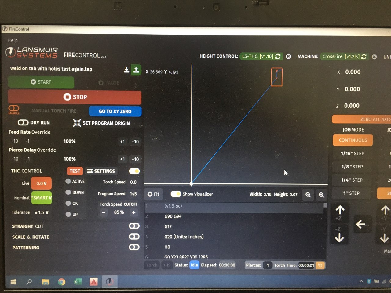 I have everything assembled and figured I’d start with a basic design for a test cut. Drew this up in autocad as I’m familiar with that. Ran it through sheetcam. When I bring it into Firecontrol I’m confused as to what I’ve done wrong.