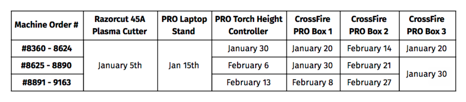 yes, and the Torch height controllers were probably the part that was effected by manufacturing. so it got delayed.