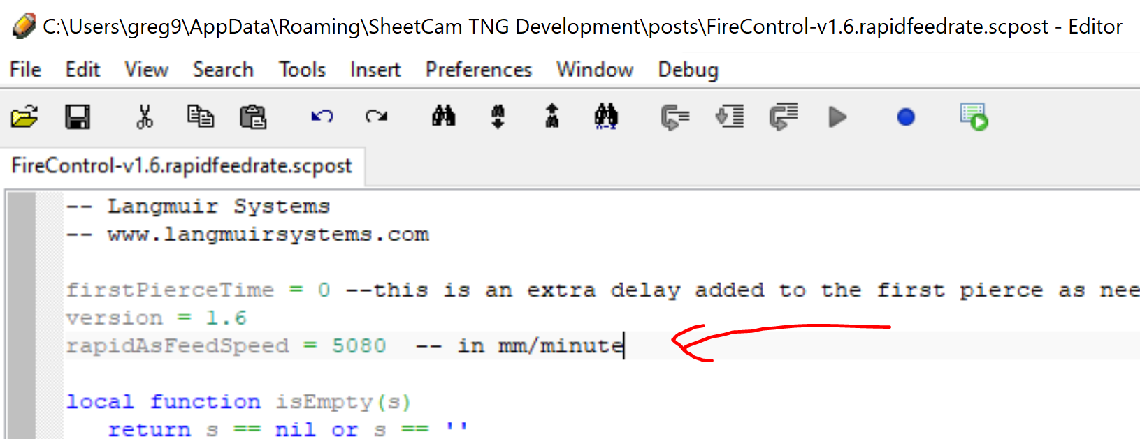 Import this post to Sheetcam (Main menu Options | Machine | Post Processor tab then select the import Post button). Right now it is set to 200 ipm.