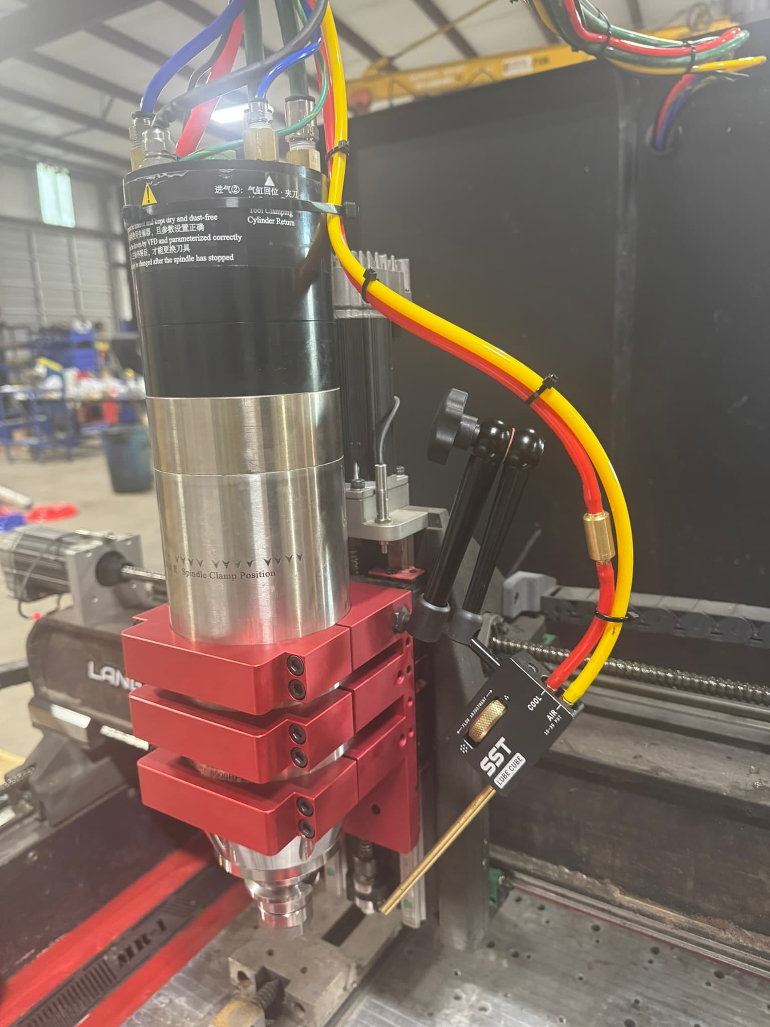 The original blue arm nozzle snapped a few times already so looking at rebuilding the setup. Maybe a manifold with 2 valves. I cut alum/wood/acrylic/etc so the air assist would help, plus would like to keep them separate.