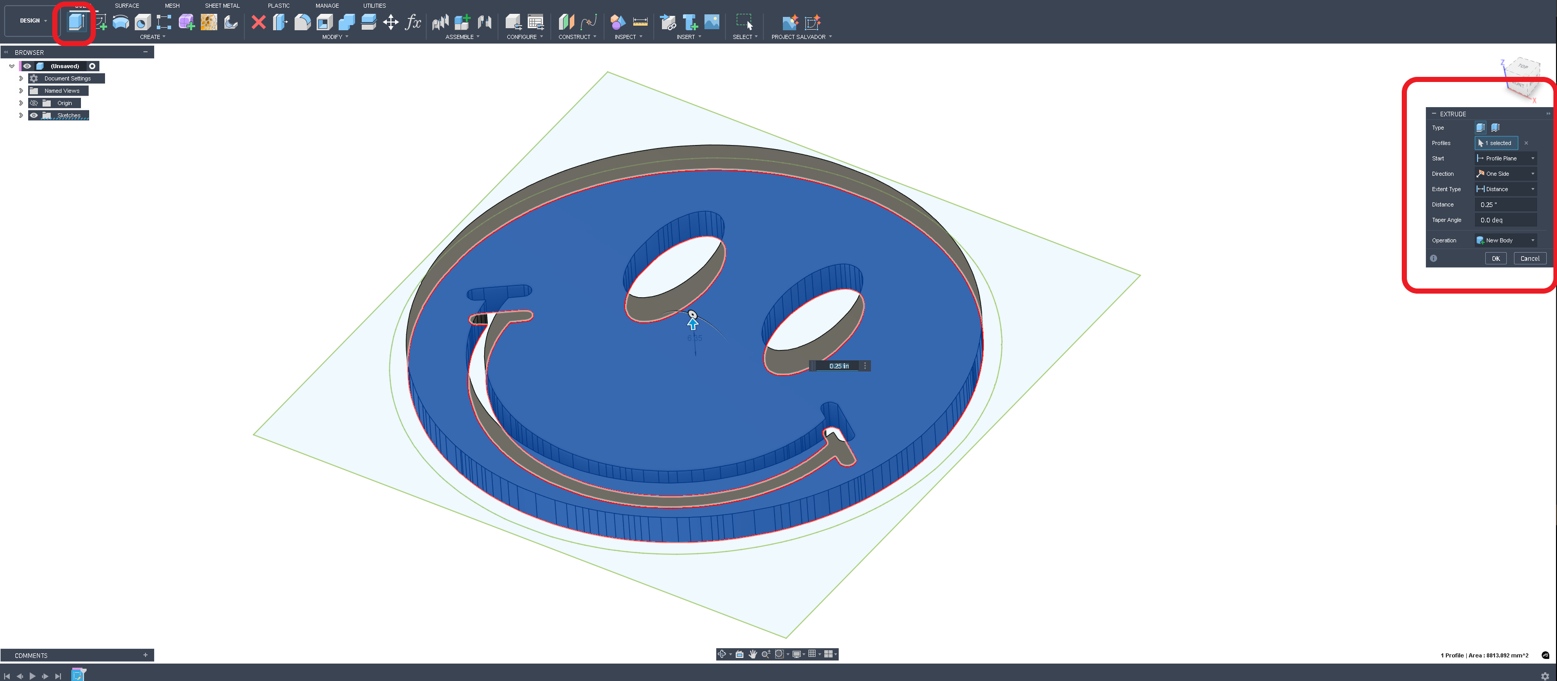 Here’s a screenshot example of how extruding is done