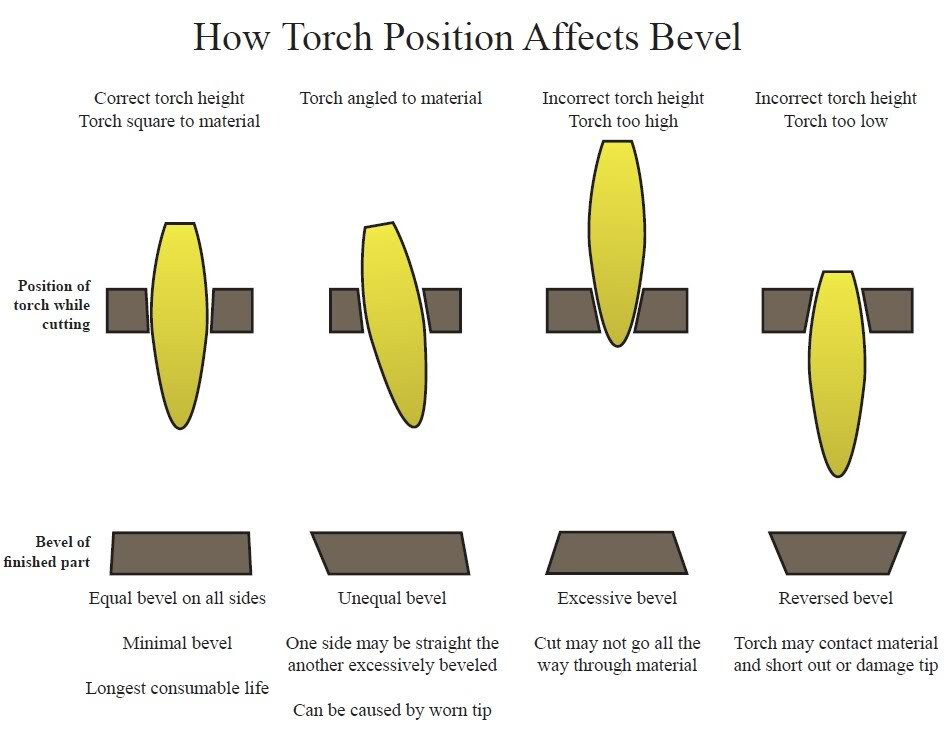 Your cut height can also add bevel to your edges, so you may be getting bevel from both the lack of a perpendicular torch and incorrect cutting height.