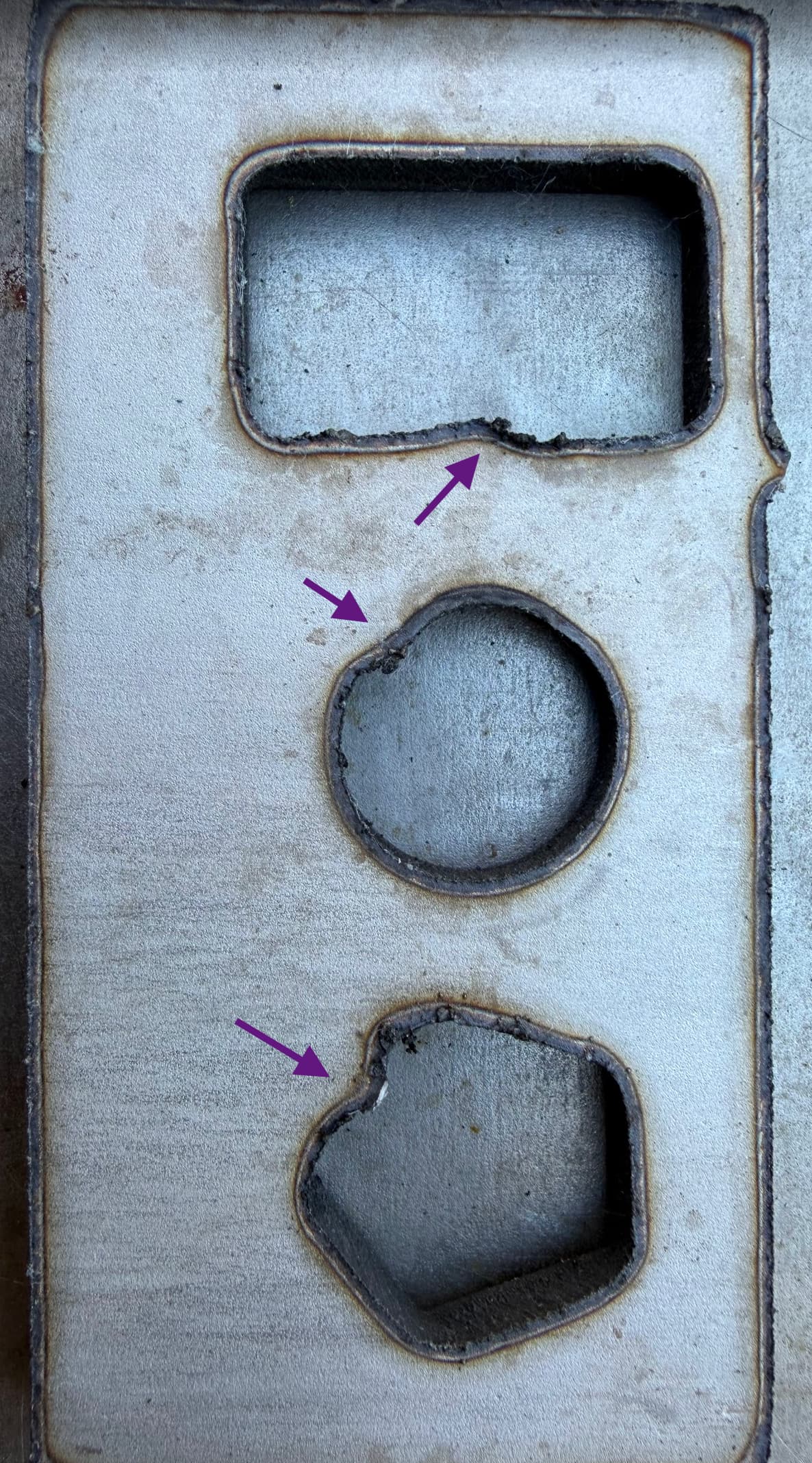 The one remaining major issue is that at the end of each contour, even with 0.3” Overlap setting, and a very conservative 26 IPM cut speed at 45A for SS304 0.25” - it is not penetrating the end of each cut, resulting in these bulges and the inner pieces hanging on.. Any advice on this issue.. it has plagued me since the first cut.