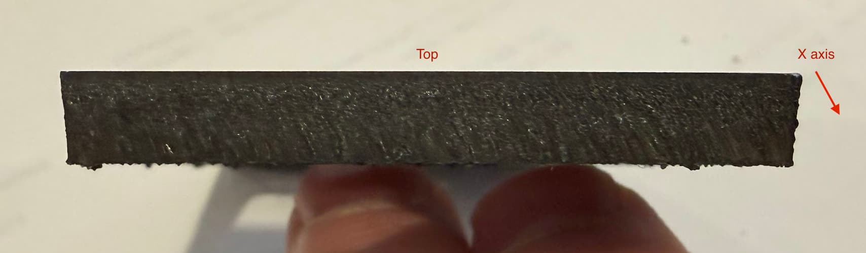 First I went back and confirmed that the x axis beam is parallel to the table slats.. this is the case, within 1/16 over travel.