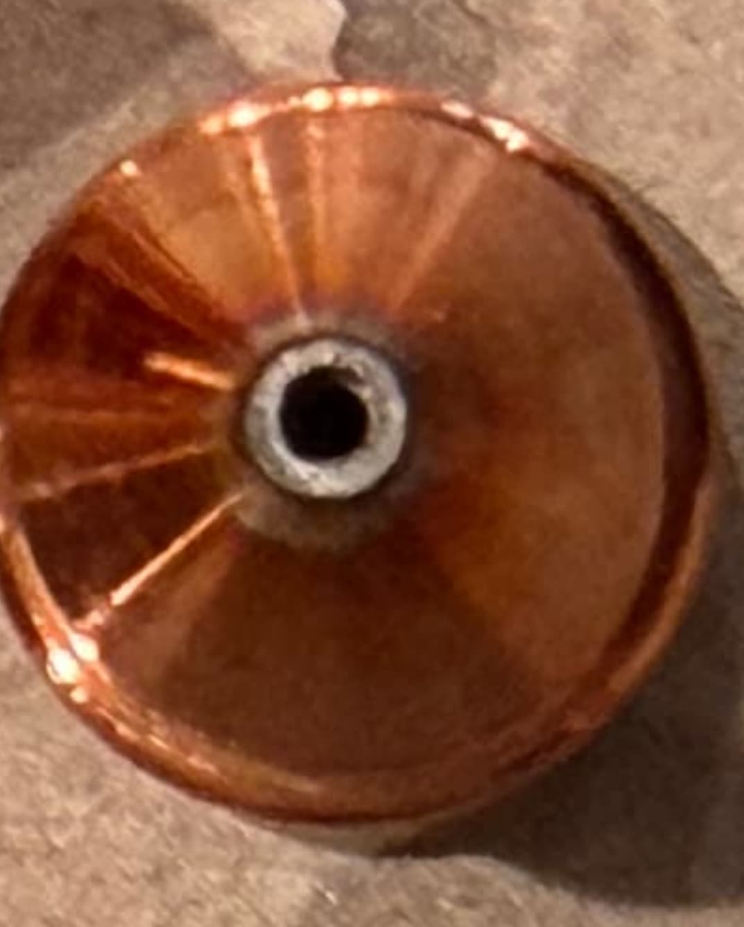 Running the torch off the sheet is hard on nozzles. It’s hard to tell if this nozzle has a reducing shelf in it or it’s now out of round.