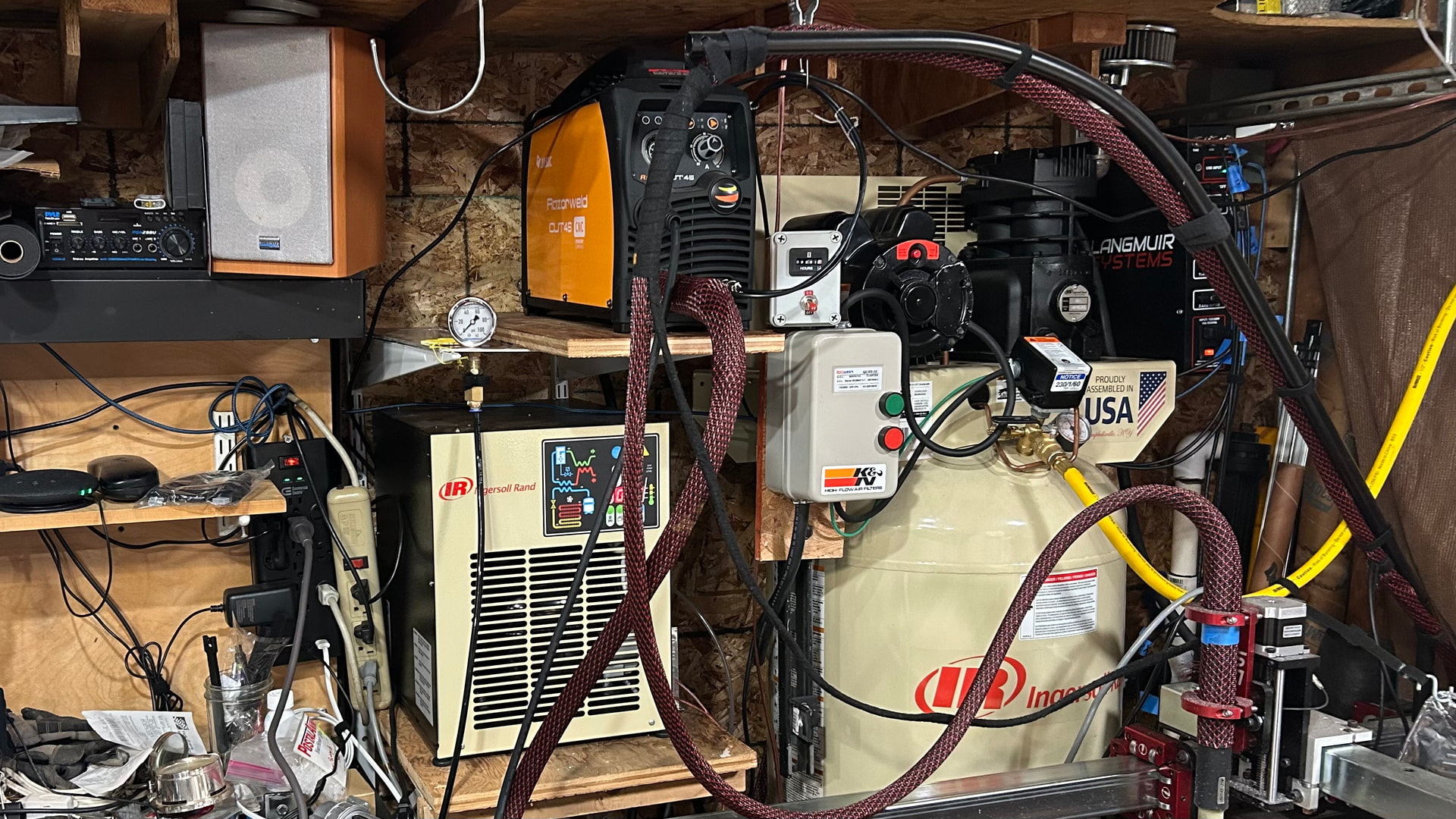 I also have another 60 gallon tank that I harvested from my first compressor near to the torch after all the moisture removal equipment besides the dessicant cell.