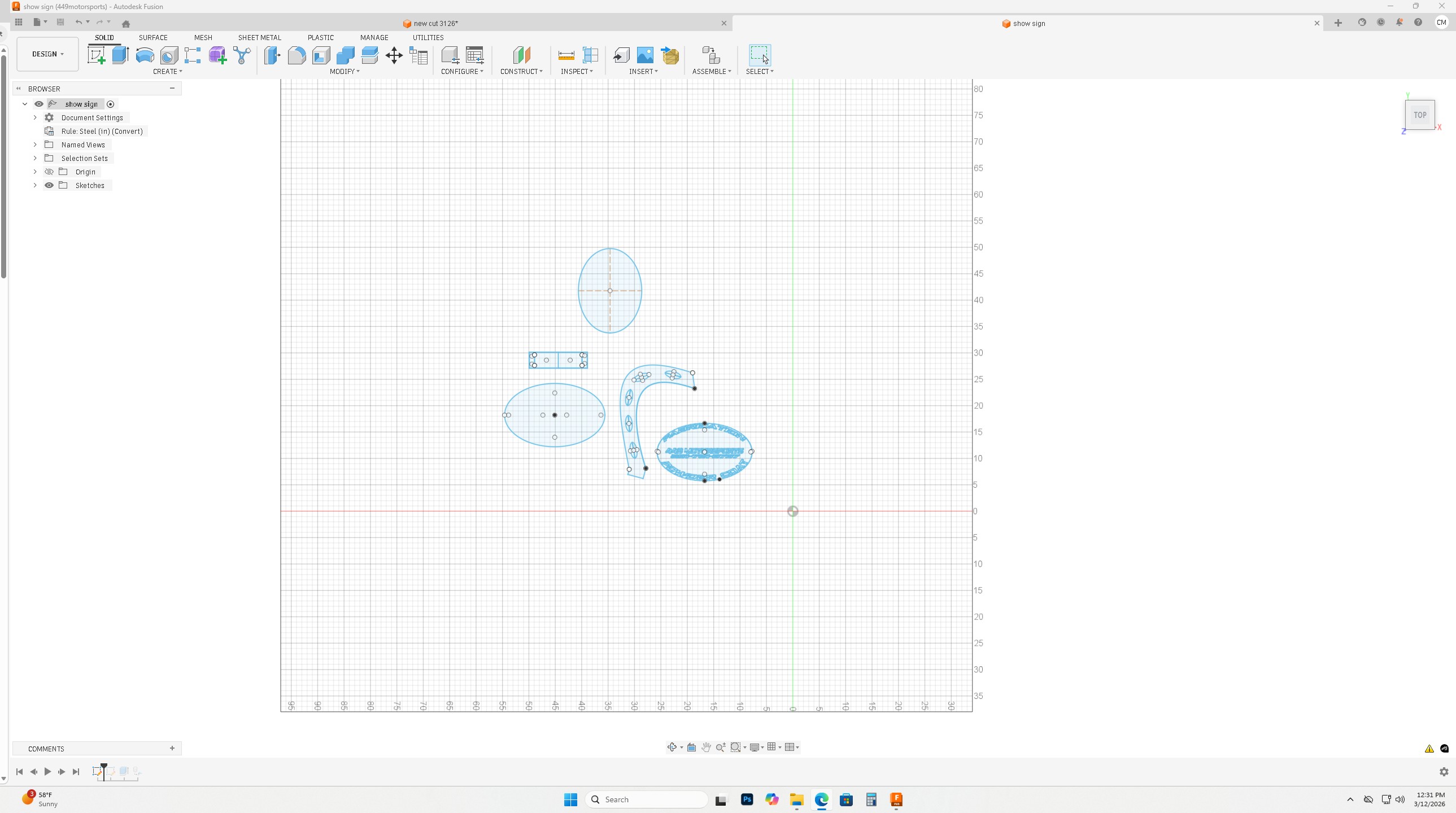 this took almost 4 hours to make because it tool fusion 4 to five mins to come back from not responding for each line made the drawing is only 146 kb leaving it as a sketch should not be an issue with a file that size