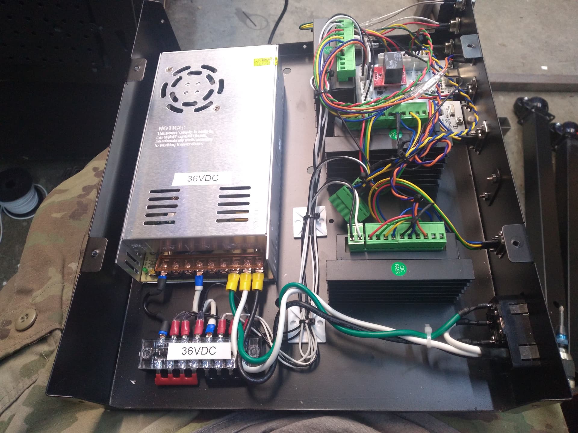 Had some of the “Shipwrights’” disease hit, figured since I was in the control box to add the limits and Z-axis. Decided to “Improve” the internal wiring, and hopefully make it look nicer inside. I used automotive double sided trim-tape to stick down the 36vdc terminal bus, and wiring tie mounts. Added Fork crimp connections, and of course a couple of labels.