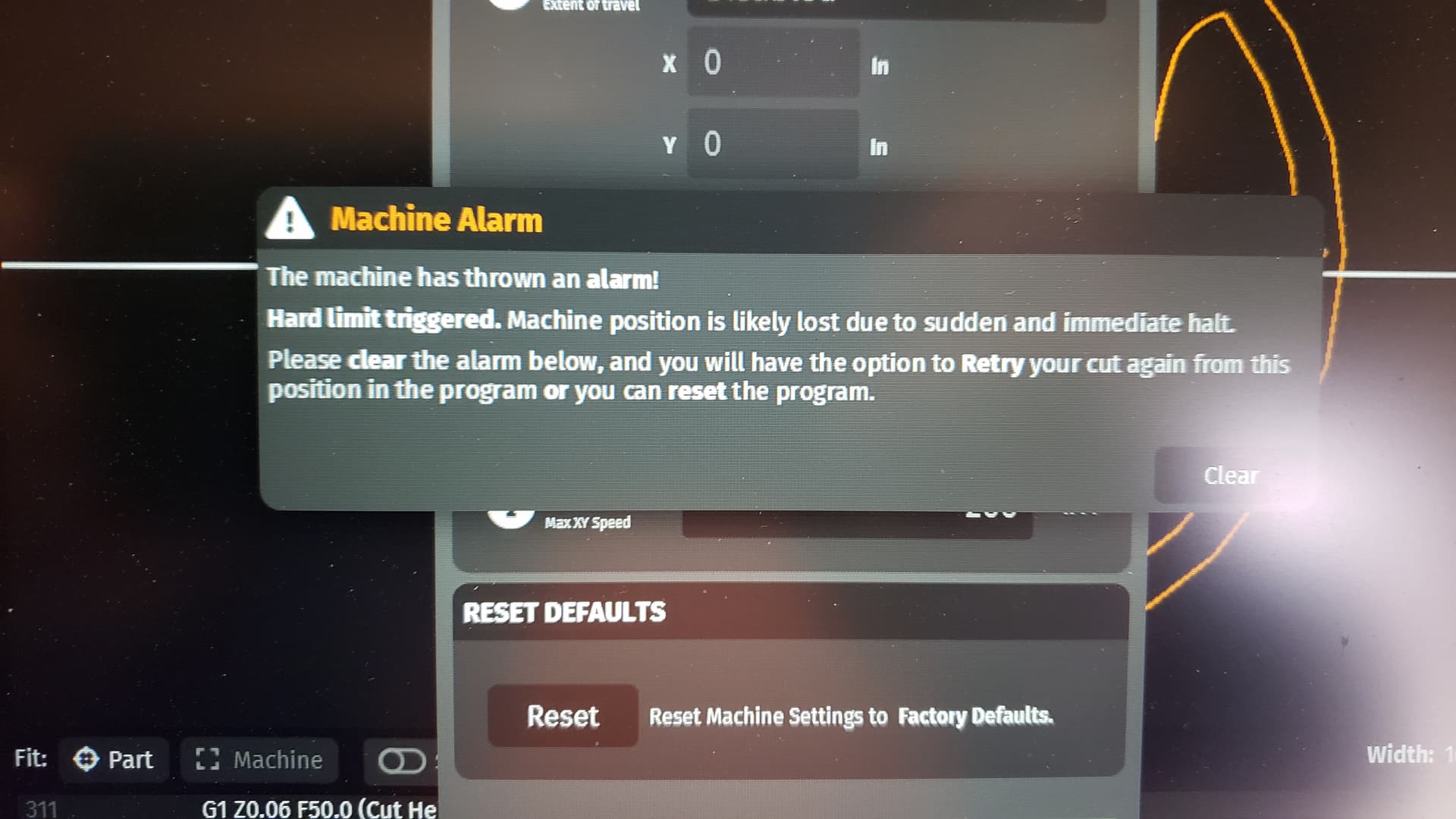 Was cutting just fine and then it stopped with error saying it hit a hard limit? Just put the limit switch kit on yesterday with soft limits disabled. Home’d machine from several places on the table with no issues. As you can see I’m in the middle of the table…