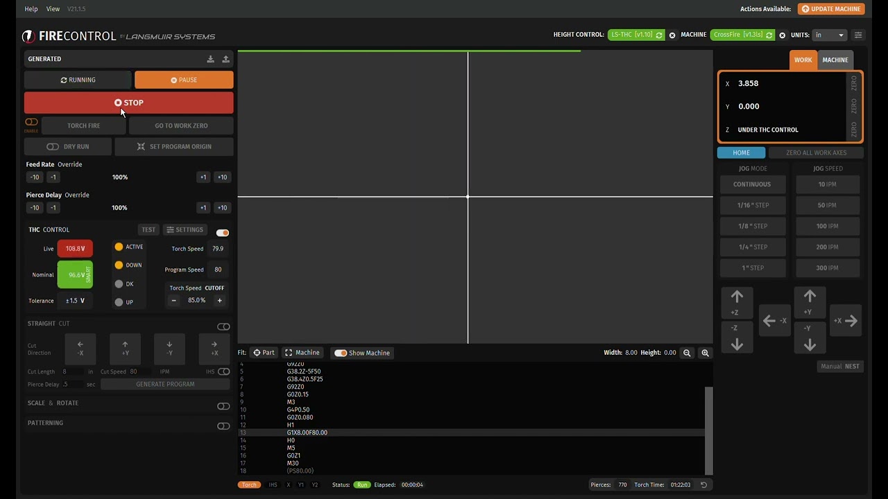 Thanks for all the input. I went back to default settings on the THC settings. i did a few 8 inch test cuts on some scrap set to 25 amps @ 80ipm and it looked to cut normal. i will cut some pieces out soon and make a full video of the cut and screen record. here is a picture of my torch and the recording of the 8 inch test.