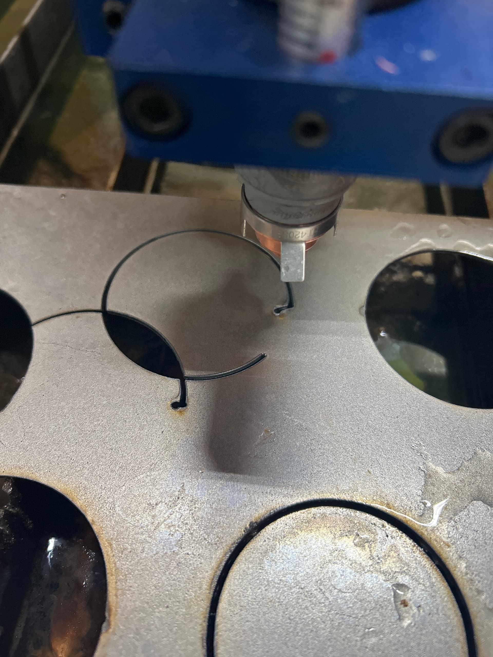 Change Pierce time to .75 changed cutting height is at .2 piercing height is at.15 and curing at 220ipm and it’s 14 ga