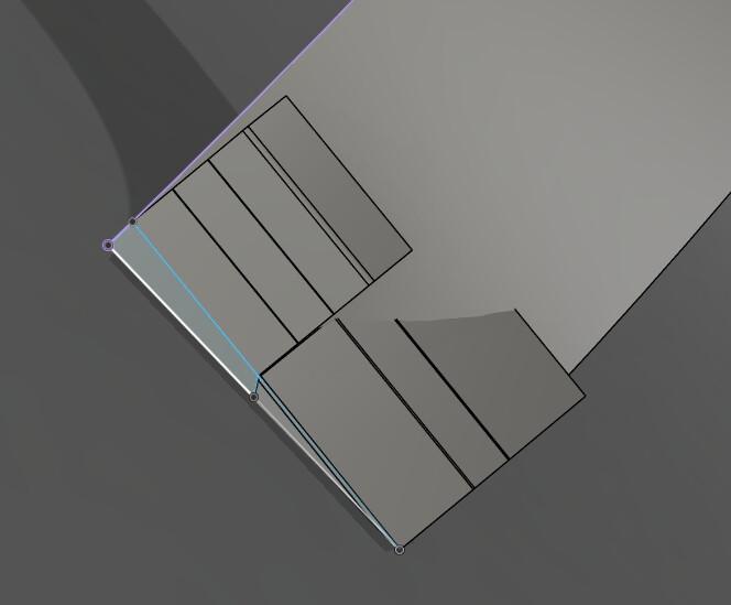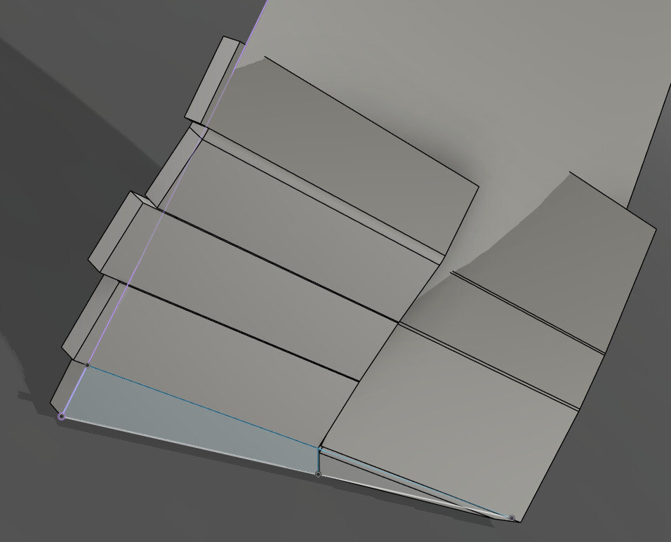 Okay, so I went totally off the reservation on this design. I started with the sliver at the bottom but cut it in half. This gives me some latitude to follow the blade more closely with two halves having flanges.