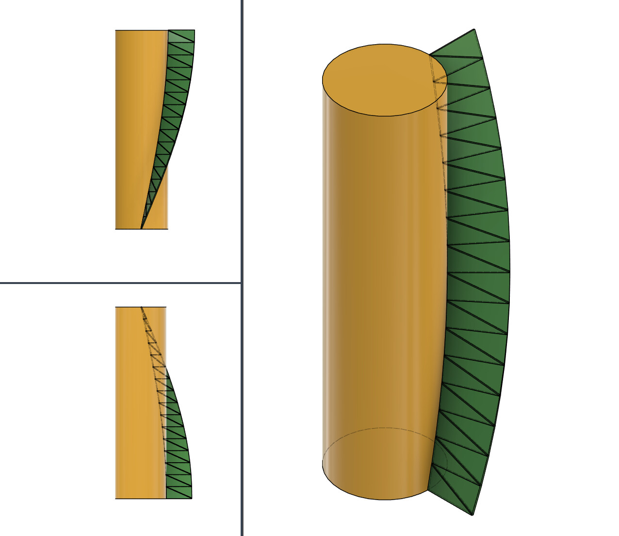 someone could get more and more accurate by increasing the amount of construction planes that split up the strake. What I found in my real world applications is that between 3 to 5 splits worked out OK with no discernible gap.