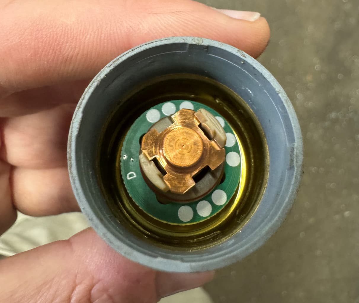 I’ve never noticed anything unusual to indicate any kind of water ingress. Here is some pics of inside a used cartridge. On the torch itself, there is an O-ring on the threaded part this cartridge screws onto.