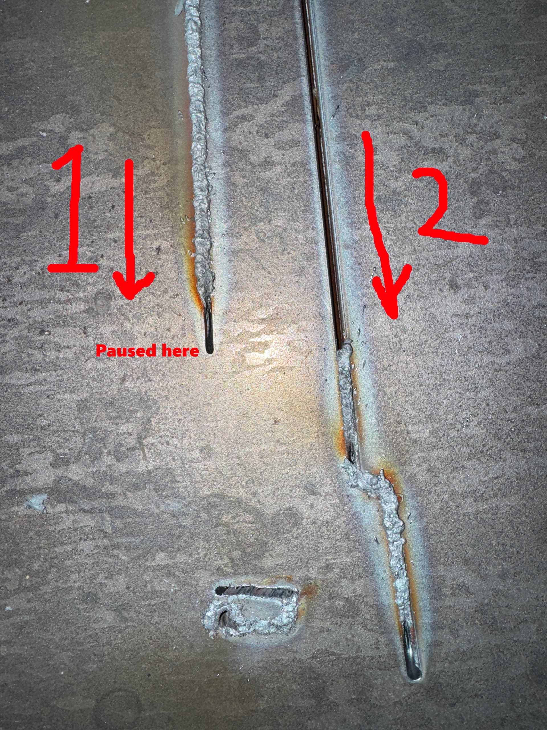 Triple checked everything and went for the dive to cut the actual piece which is 2 ft long. Consisting of three traces, Cutter started the first trace solid the first 18 or so inches then the surface started bubbling up and penetration failed. I could have stopped the program but I let it run its course. The trace looped around and another 18 inches later, I decided to pause the system as the bubbling was causing a lot of spark. Right before I paused, I noticed the arc somehow stabilized and started cutting clean. Regardless, I replaced to fresh tips before trace 2.