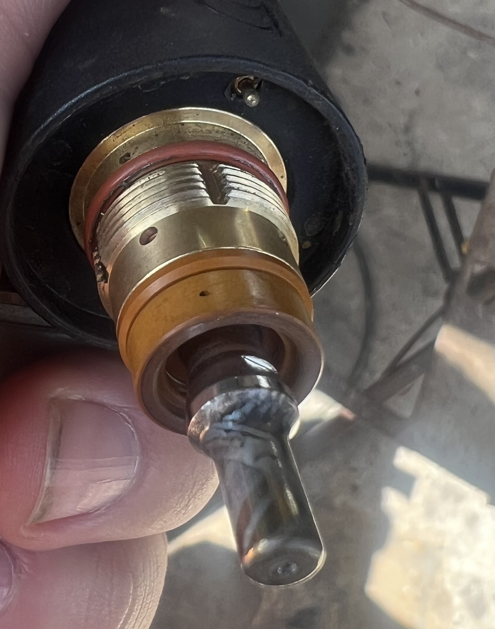 Assuming it’s an air pressure issue which you can see I’m getting moisture on the electrode but also on the tip I’m getting a “arc looking” deal. Any ideas?