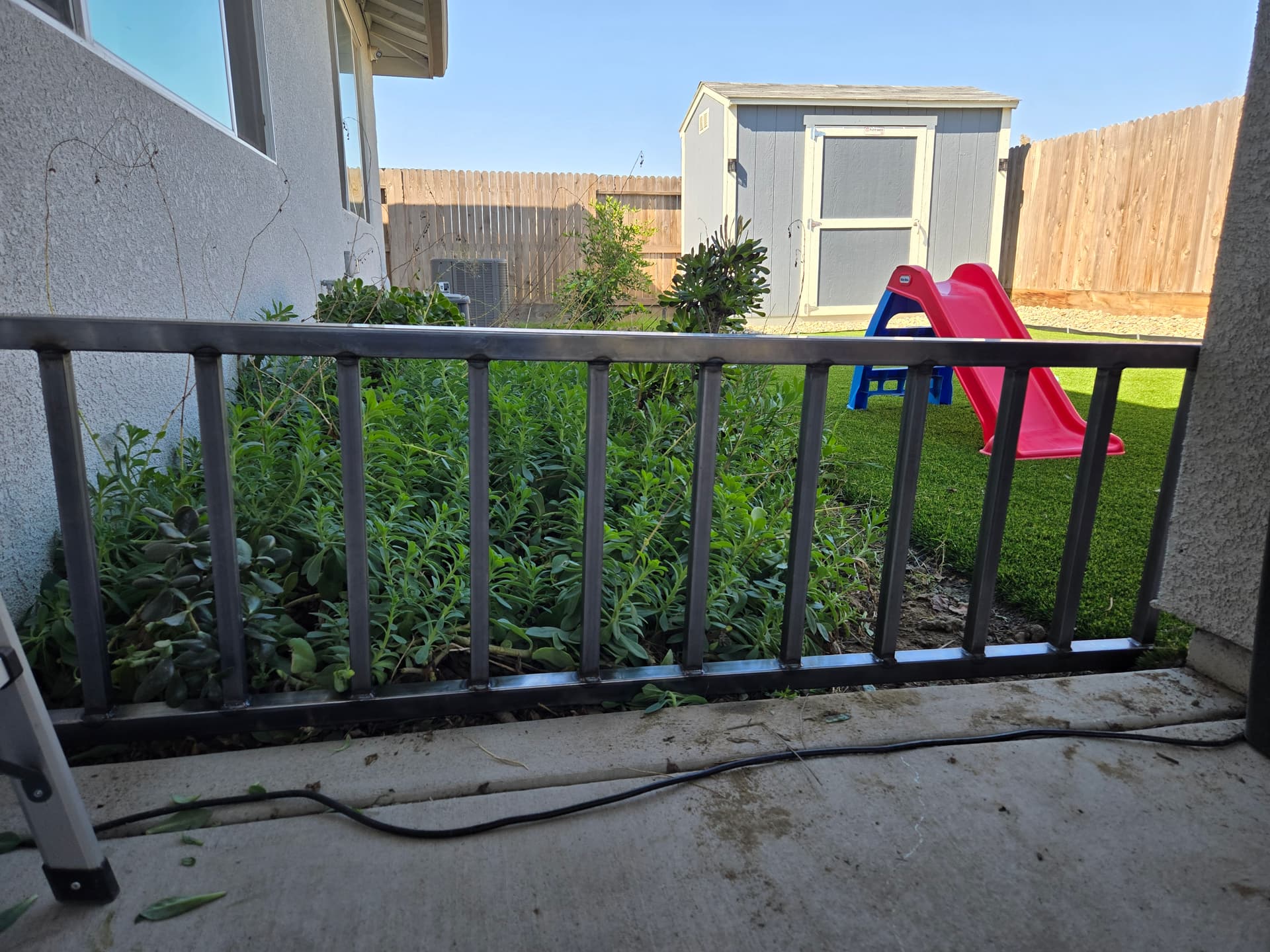 We were fostering a dog, and I decided to adopt it, so I need to make a railing to block off a certain area between the covered patio pillar and the wall.
