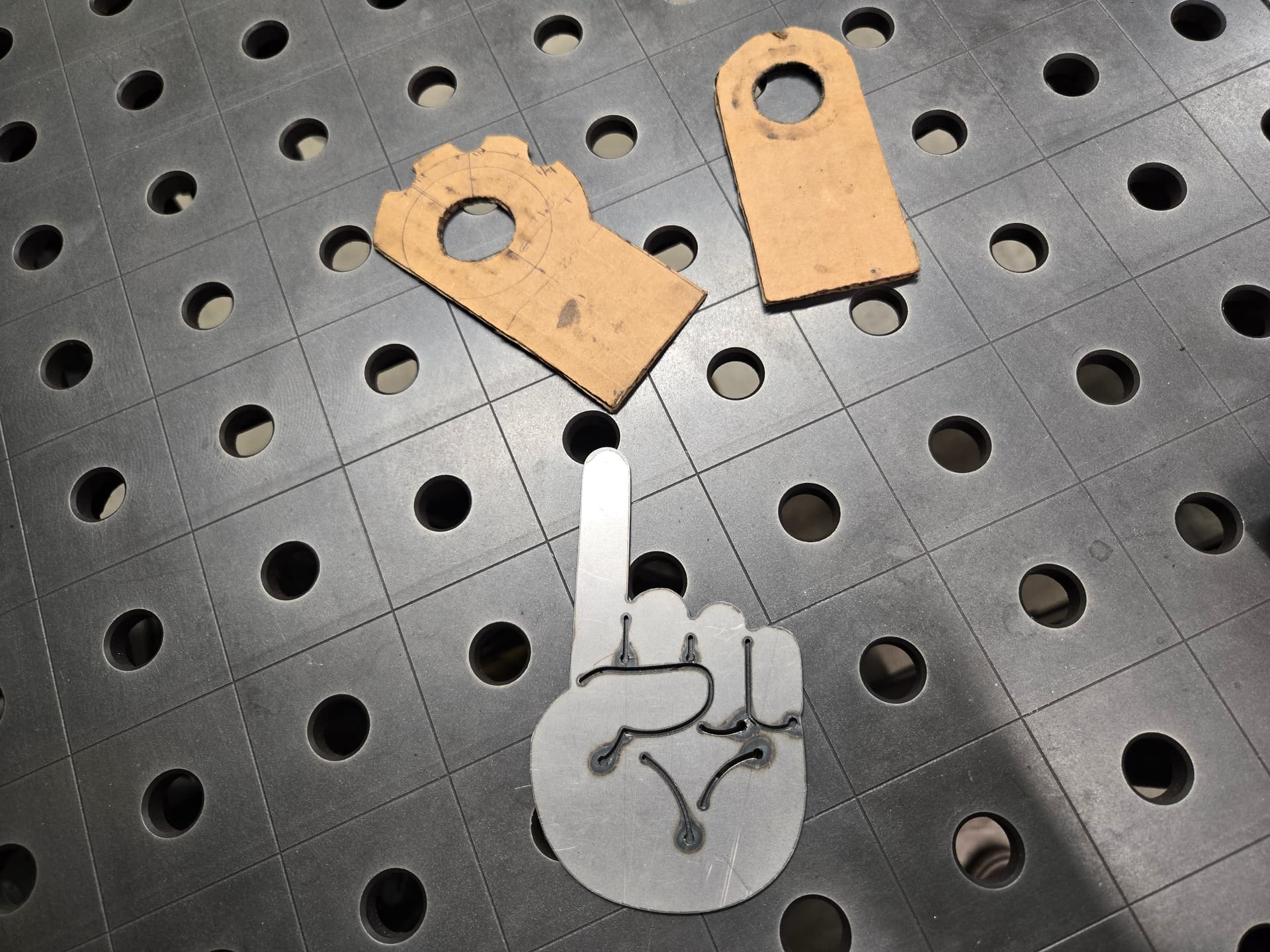Made two pairs of some kind of bracket for a cabinet maker. He sent all the drawings in metric and I took for granted how miniature it actually was till I began cutting. It was making me wish that hypertherm made a ultra fine cut consumable . 2mm holes. Should work out fine. we’ll see how they bend up in the Titan.