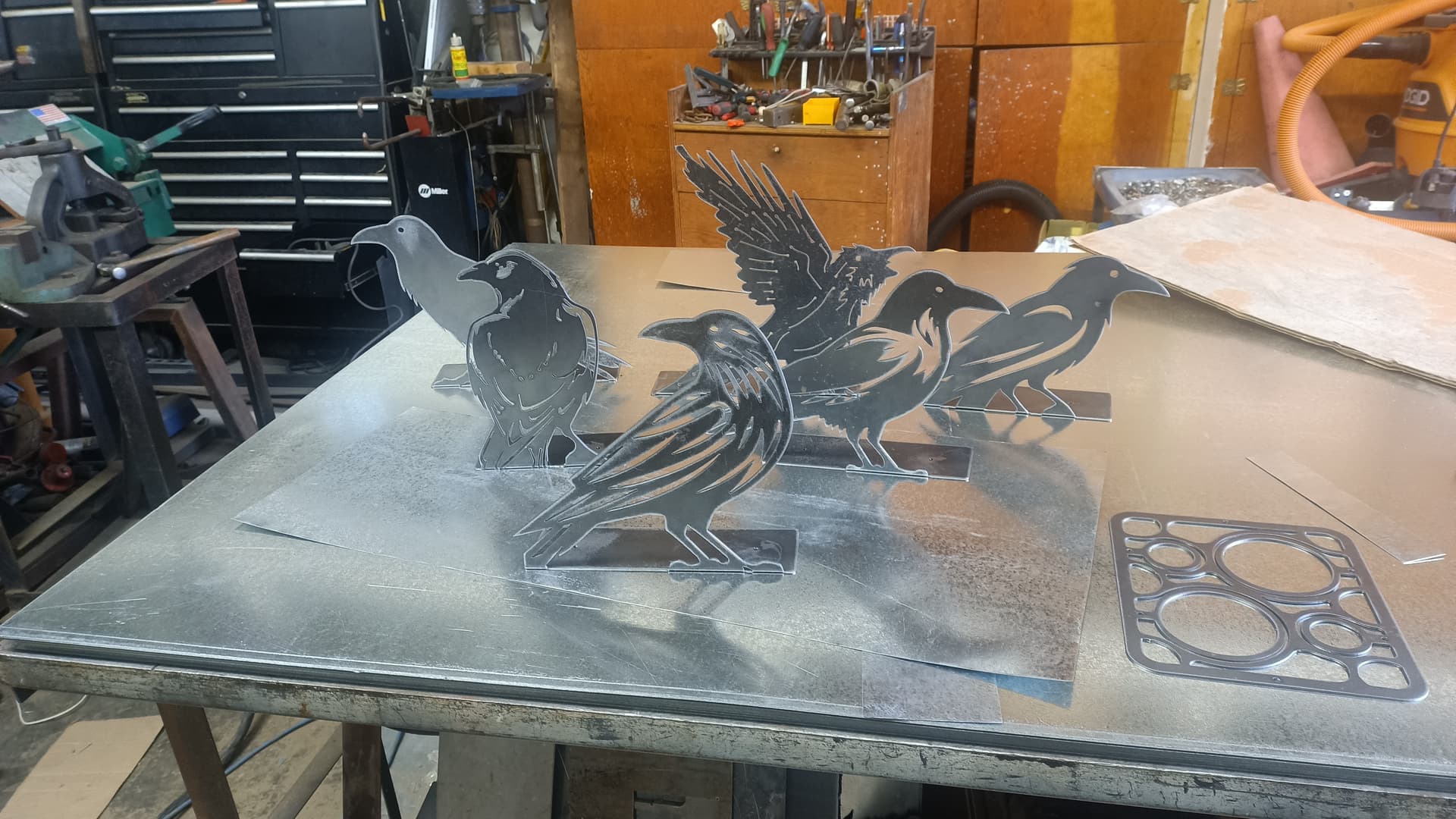 Customer wanted crows or Ravens not on a branch so we made several for them to choose from. Also cut one of those wine bottle Rack from FireShare, Thank you James.