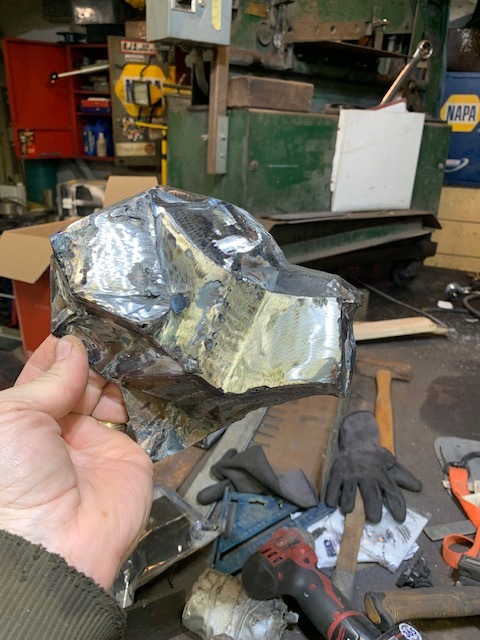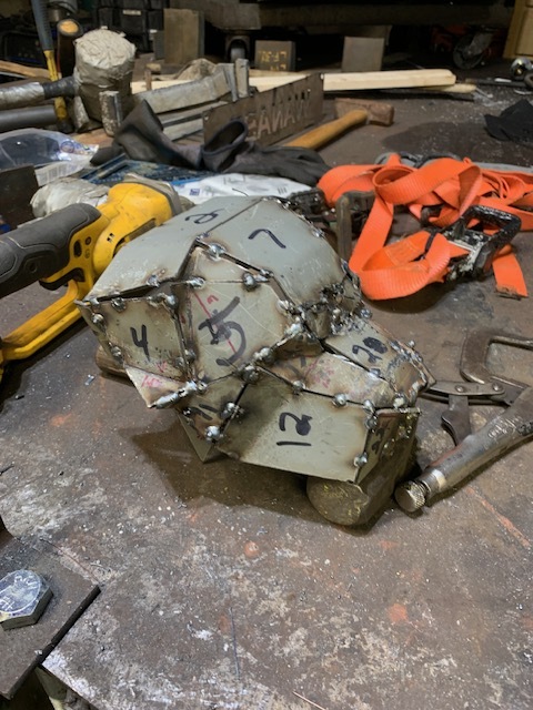 I have been working on this Rot for quite some time. 130 ish pieces cut on my pro. I think if I do another one I will Mig weld as much from the inside as I can then Tig on the outside. The grinding and filling is overwhelming. Also if the pieces are not exactly spot on the sharp edges are very hard to fix. I did cut the tail off and make a stubby. (Requested by my daughter) I may end up using a little body filler to make it look perfect and paint it mat black.