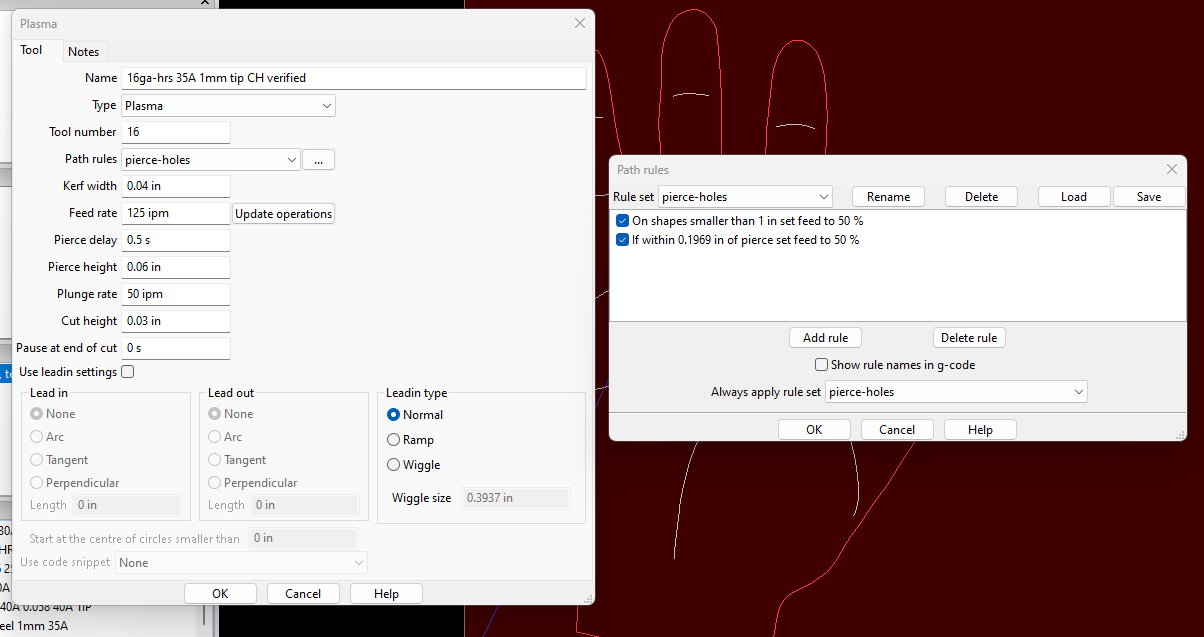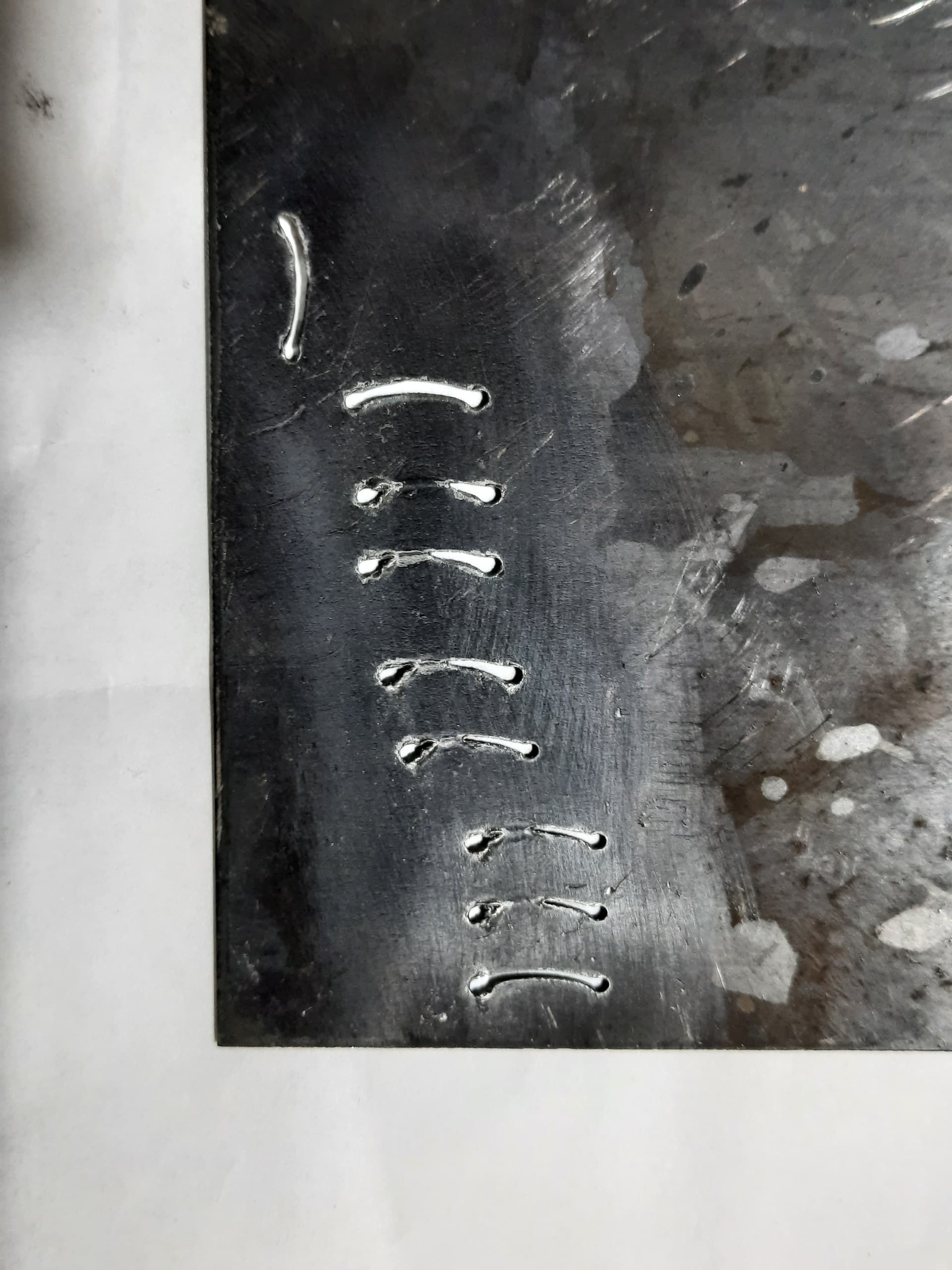 Worked on 16ga pierce performance today for no offset cutting. I tweaked plunge rate, pierce height, pierce delay and cut height. I think this looks pretty good. I had good piercing but the first part of the cut didn’t make it through. Added a 50% speed for post pierce cut within 0.2", cleaned it up nicely. Hope you can understand my images, submitting from phone. Comments welcomed.