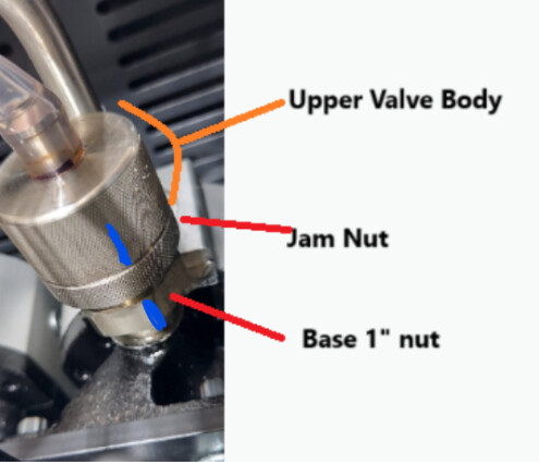 If your upper valve body and base 1" do not have a sharpie mark showing their default alignment, I would add one before working to tighten it up. That way you can keep track of how far you have tightened the valve past the pre-calibrated position. DO NOT TUNE YOUR VALVE MORE THAN 180 DEGREES PAST THE PRE-CALIBRATED VALUE WITHOUT CONTACTING THE SUPPORT STAFF FIRST.