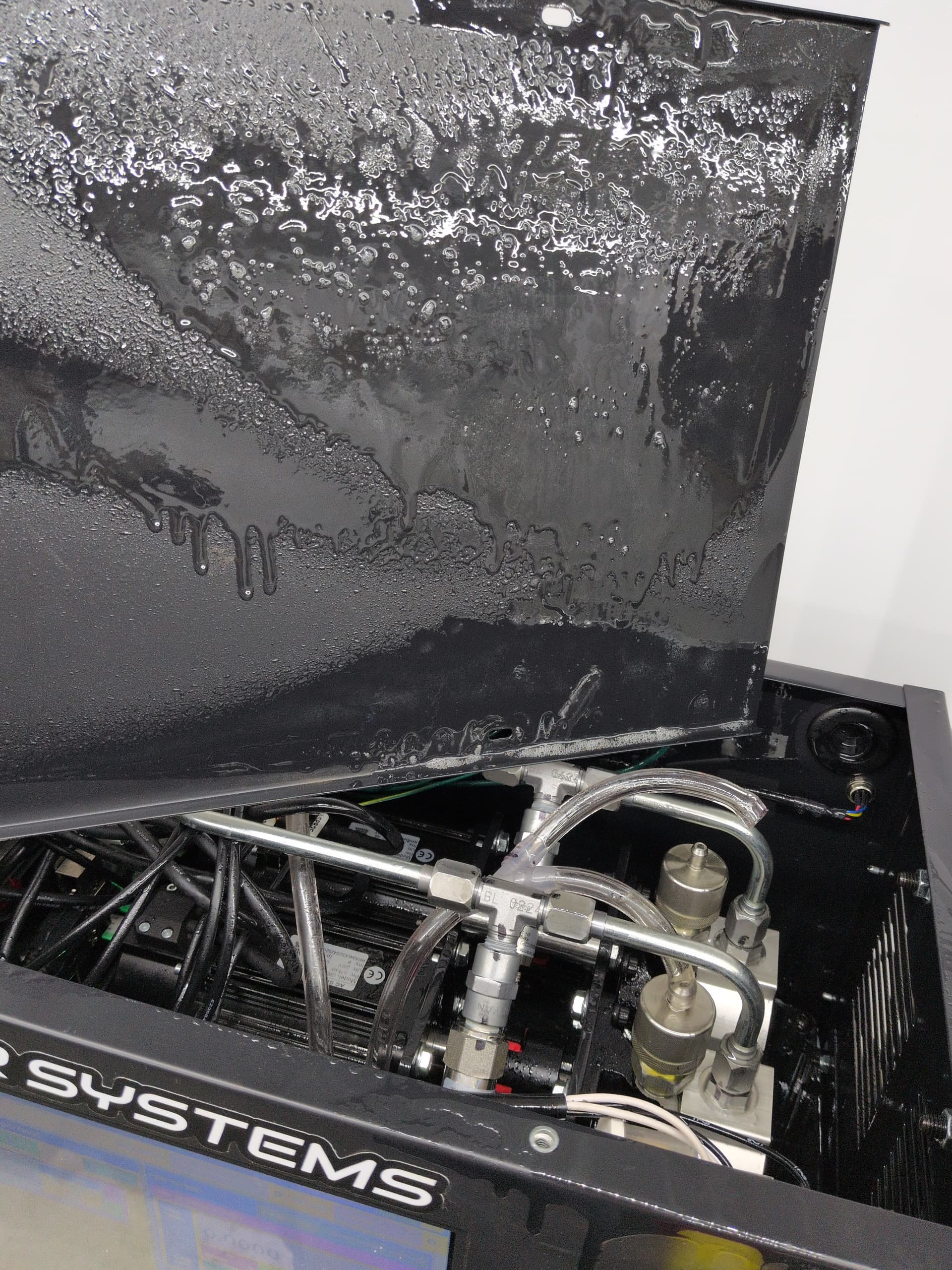 In terms of design solutions, if you think that is likely to happen, then the full fix would just be to rout those lines outside of the machine into a big bottle. In operation a blow-off like this is very rare and I donāt get many comments from customers about it.