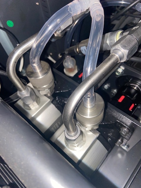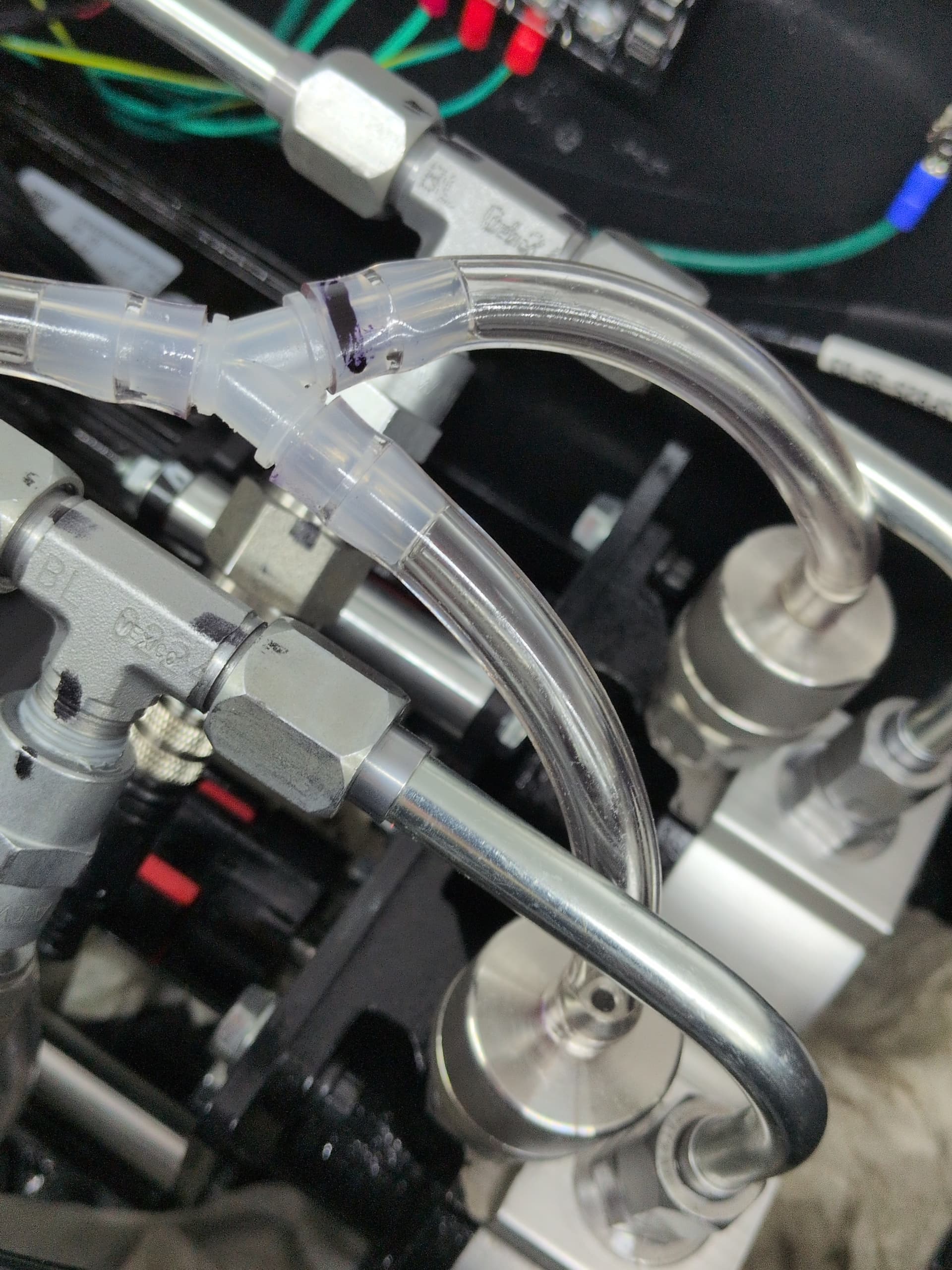 The major design flaw is that TWO 1/4ā high pressure blow off valves are going into ONE 1/4ā TEE fittingā¦which further restricts down to 1/8ā ID fitting into the tankā¦. 1/2 combined high pressure into 1/8ā fitting IS GOING TO LEAK or BLOW THE LINES OFF āwhenā the valves pop off because a stop, limit switch or soft limit in the software WAS NEVER INSTALLED on the bottom strokeā¦..![]()