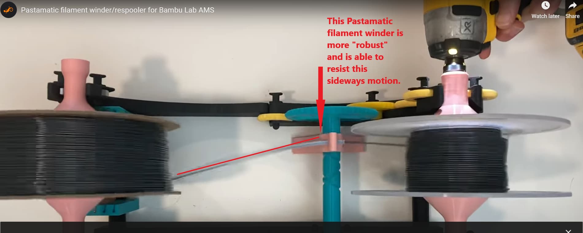 I have had to abandon my classy looking filament rewinder spool. If you look at the filament tracker (or whatever it is called) it is only sitting in a tray with very little stopping it from popping up and out of the tray. If the filament is lined up well with the donor spool, then no problem. If it gets sideways, and it will, then chaos occurs!