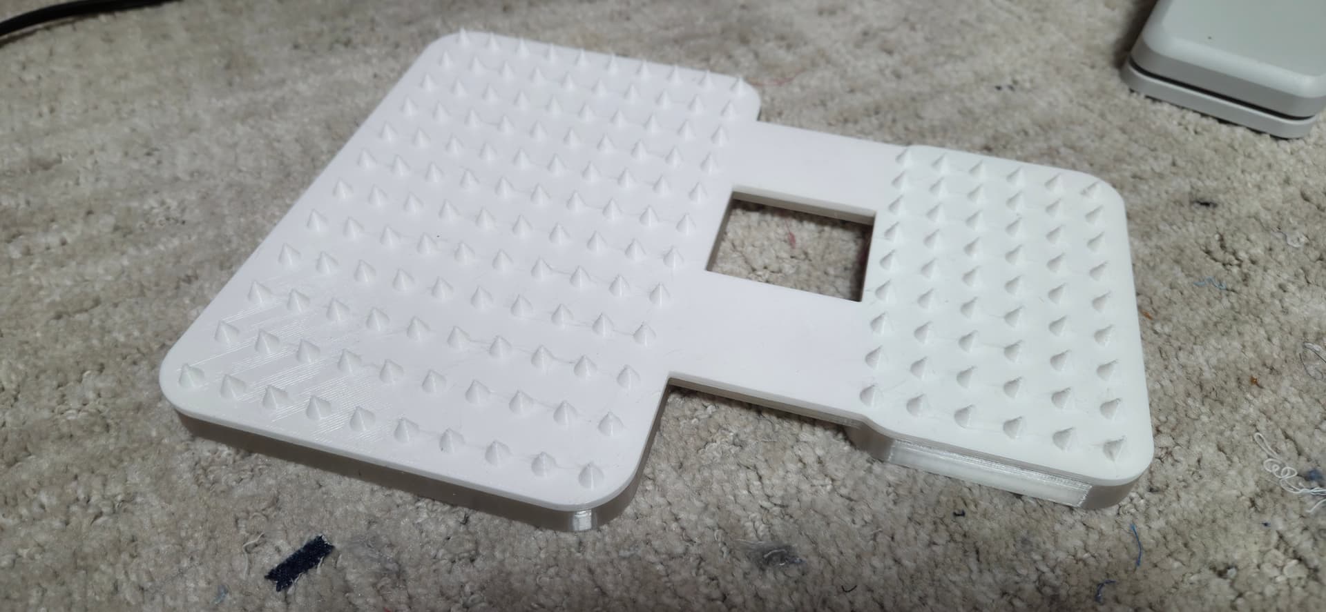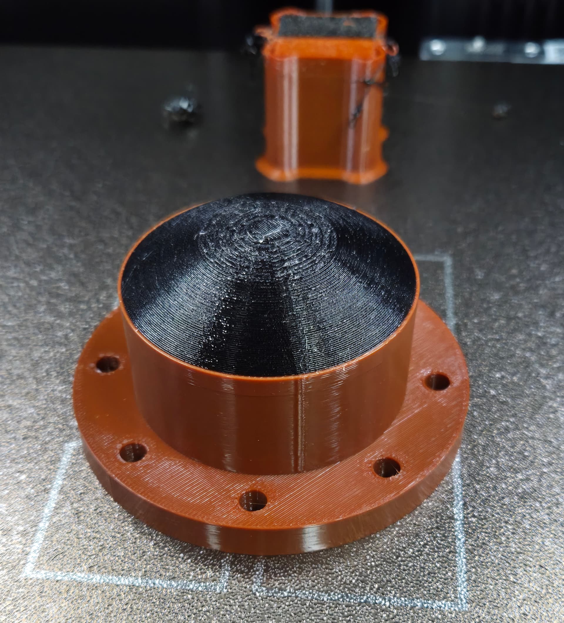It is printing now. I will report back after the print is complete. The portion contacting the floor is the black section which I am using TPU. It is interlocking with the PETG mounting section. This image is showing the item upside down.