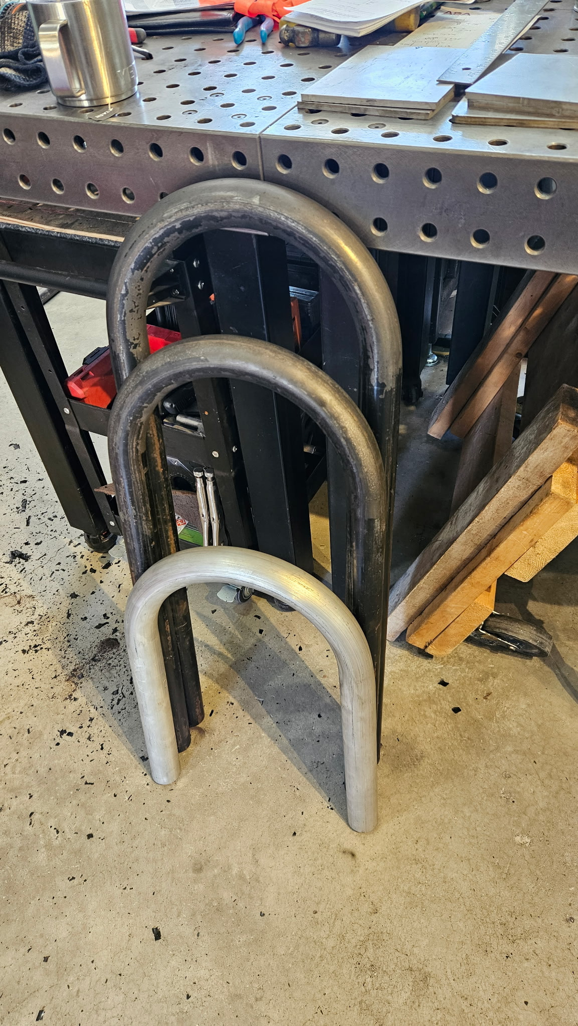 We bought a few lengths of pipe and started figuring out our bend allowances and our spring back in a few other details.