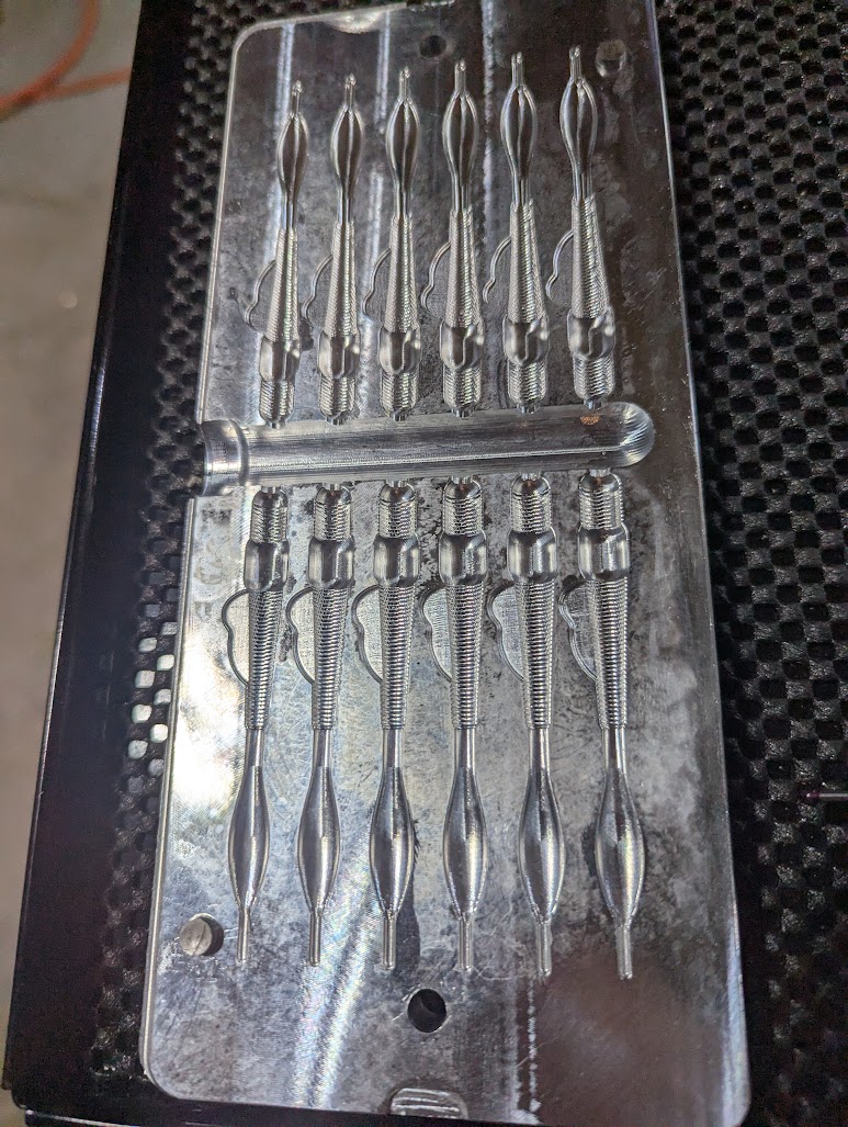 Hello all. I’m new to the forum and just wanted to share what I’m currently working on. This is an injection mold for soft plastic lures. This is side one and side 2 is currently in the machine hopefully finishing up soon.