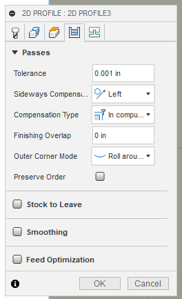I donāt want any finishing overlap and I still want left compensation otherwise it will cut on my line.