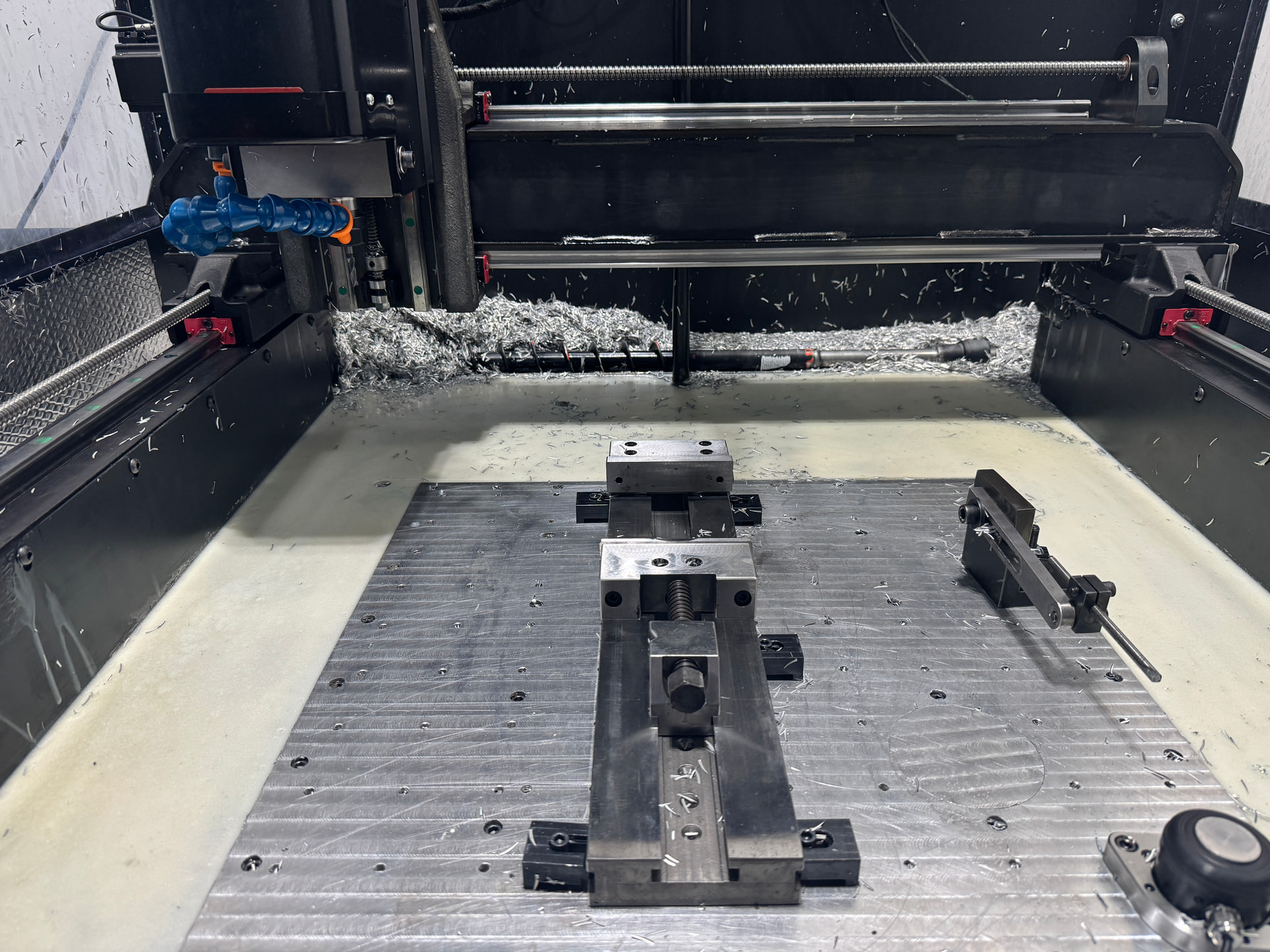 Thanks for posting an update! I was curious how much chip would end up getting pushed back out of the auger tube sides. From what I remember of the Haas vf2 auger setup, the screw was 75% of the way under if not 100% under where chips would fall. Its hard to see in your video but have you added a garden hose nozzle to your coolant pump? Wondering if that could help you for cleanout instead of needing to take off the side panels and use the shop vac.