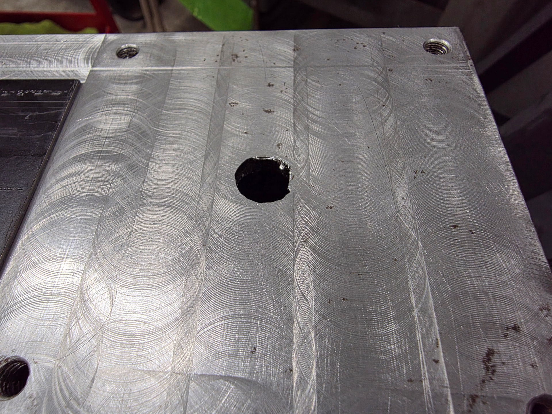 I manually jogged the machine to each bolt location and milled this excess epoxy away.