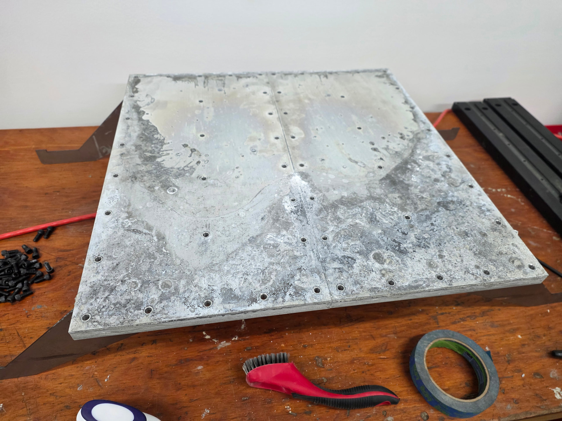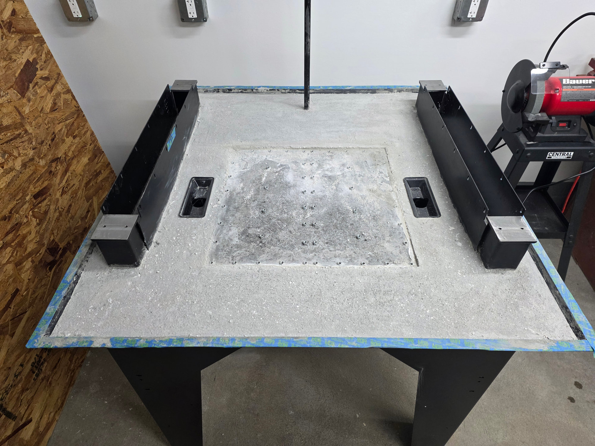 I poured the concrete yesterday and noticed after I tamped and soaked up the excess water that there is a slight air gap between the baseplate and the concrete. And all 4 corners of the baseplate jigs were flush against the Y-Axis rails.
