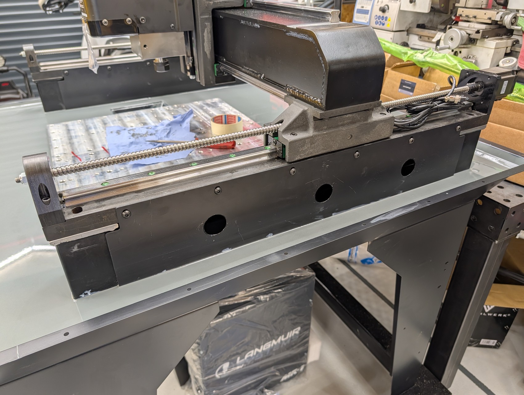 The silicone is a bandaid for now because there’s a smidge of concrete exposed under one of my y-rails, but it does keep chips out which is nice. Probably isn’t leak proof and traps a little bit of coolant so I’ll eventually get around to popping the rail off, sanding around the bald spot, and pour a bit of epoxy in there. Then just leave it open or put some mesh or something to keep chips out.