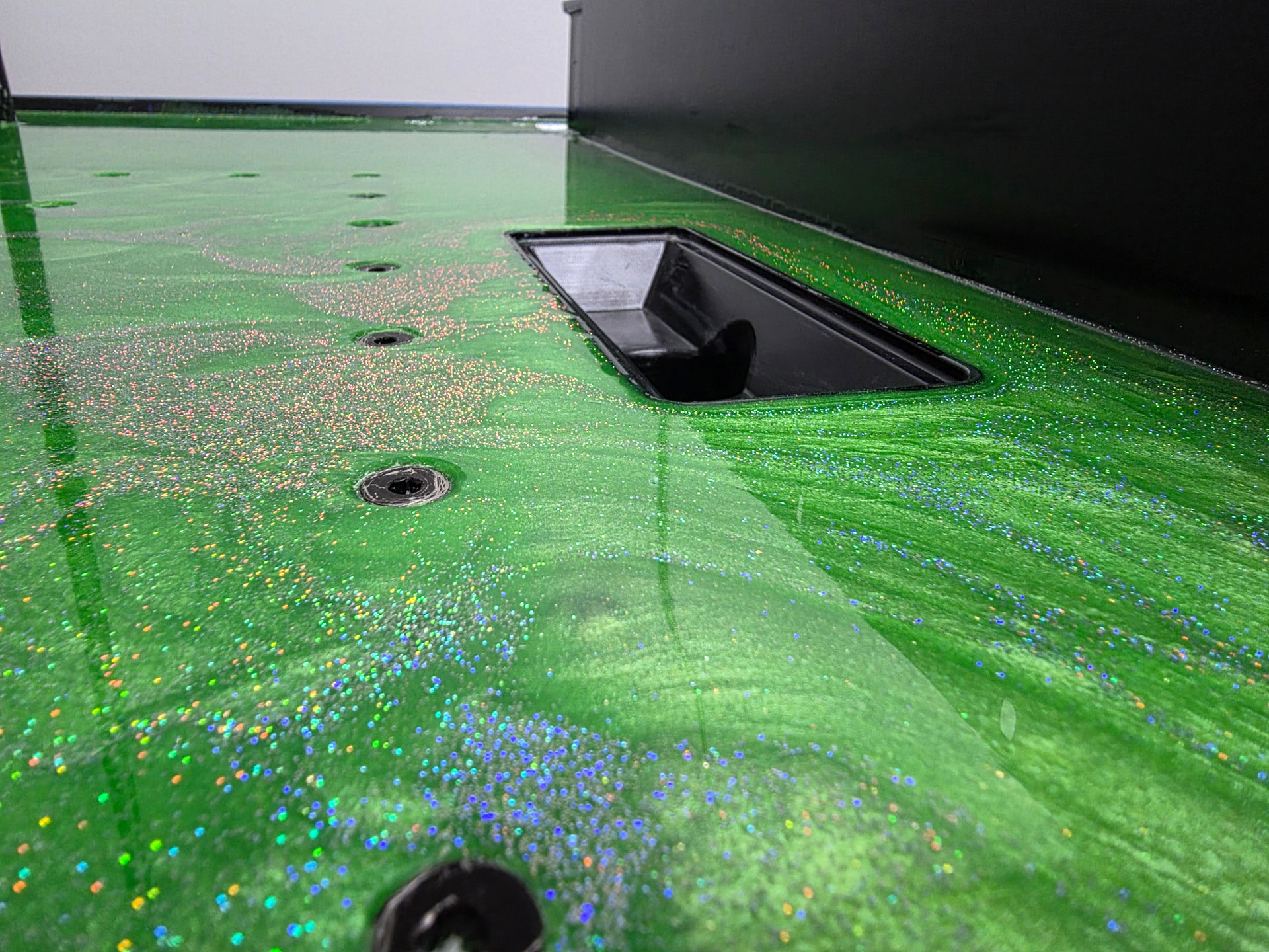 Thanks soo much for all the information and help! I ordered o rings and flat countersunk screws poured my epoxy came out pretty awesome! Concrete was pretty low so I used almost 2 gallons of epoxy glad I got that extra!
