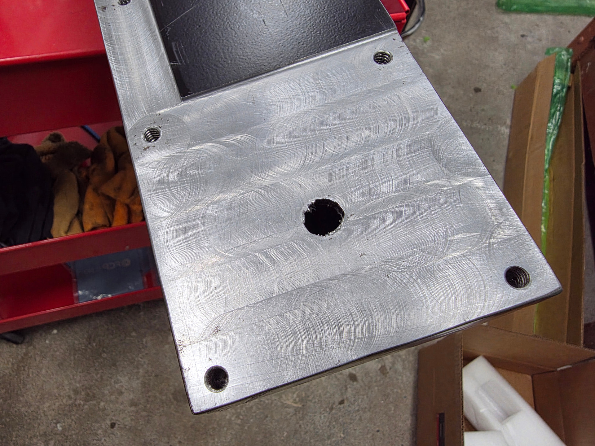 I didn’t want any coolant soaking into the concrete and I wanted to prevent galvanic corrosion by trying my best to isolate the aluminum base plates from the concrete & steel anchors.