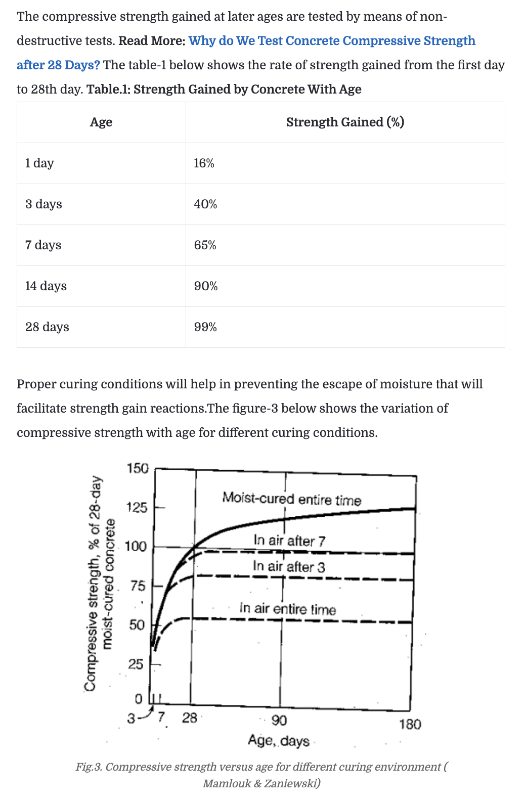 I found a reference to 30 days in one of their comments - a month makes sense given the following table which puts the strength at 99% in 28 days. It also shows how much stronger the concrete is if the surface remains wet/moist. I think 5 days to epoxy is a bit quick but that is just my personal opinion, but it might also lead to a stronger slab given its much harder for moisture to leave the slab.